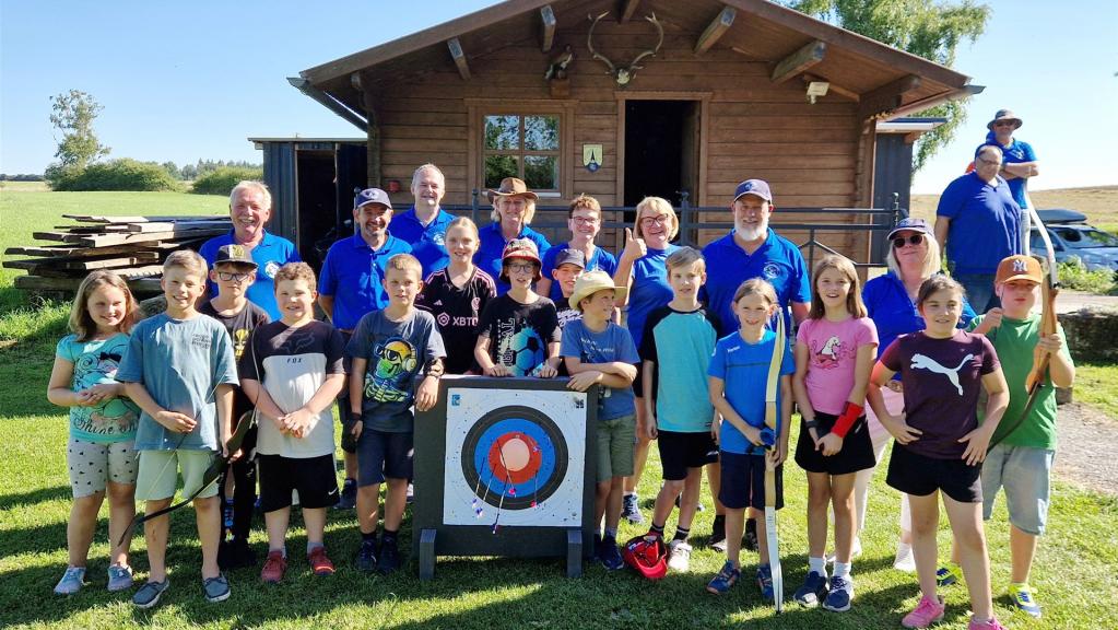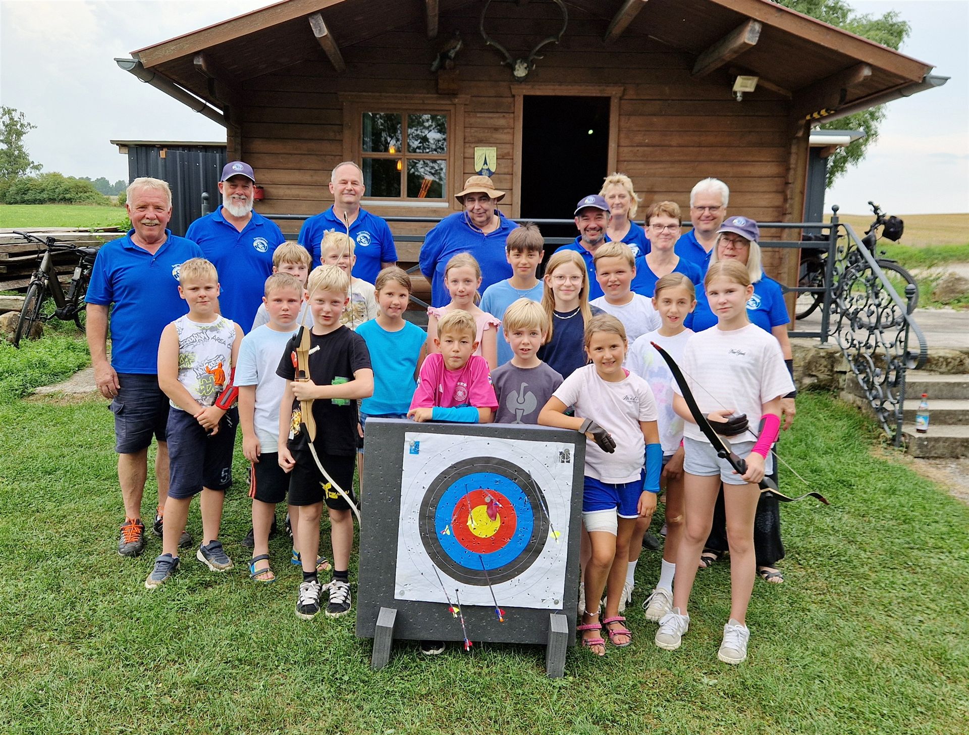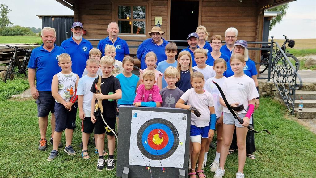 Diakon Jörg Schwarzbeck mit den Mitarbeiterinnen der KITA Wiesenwichtel zu Gast bei den Bogenschützen in Diebach!