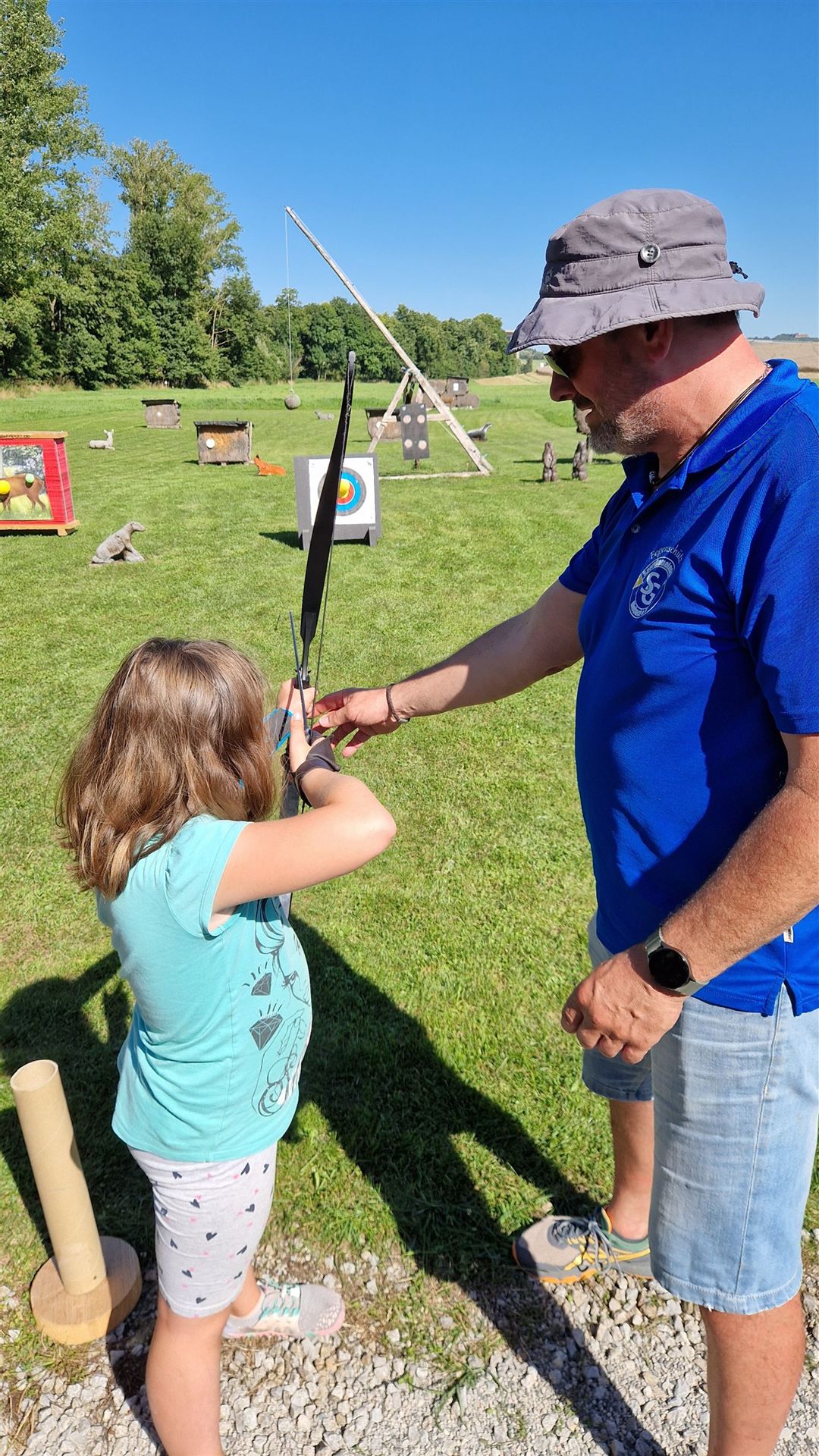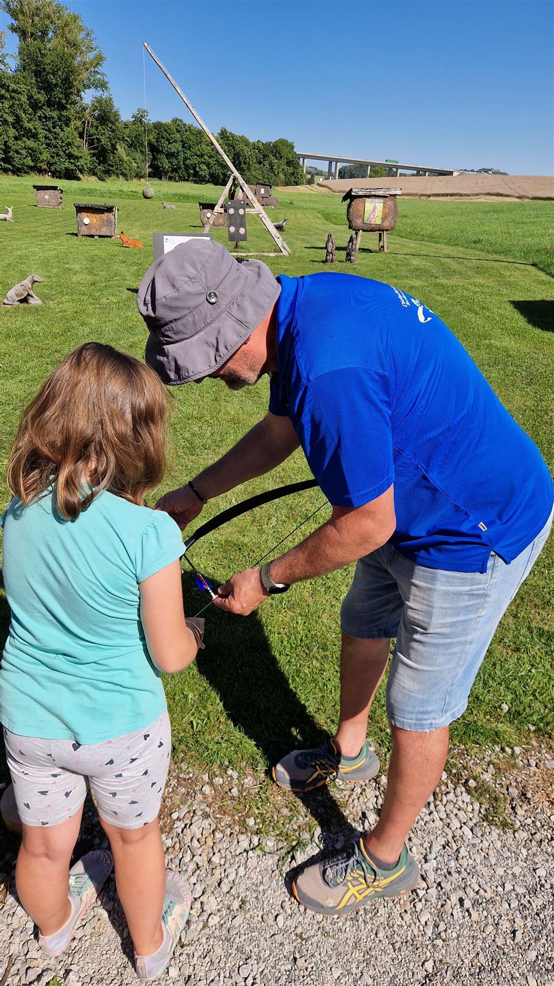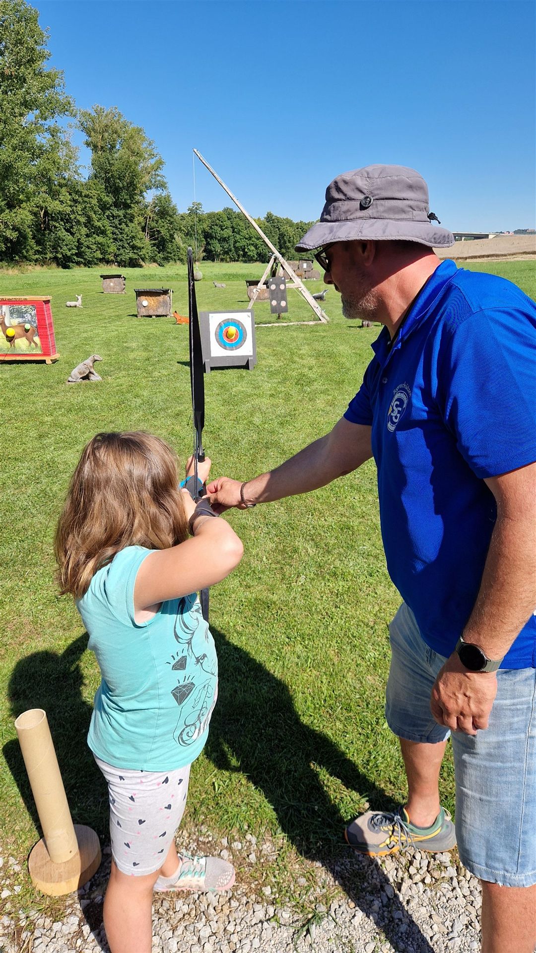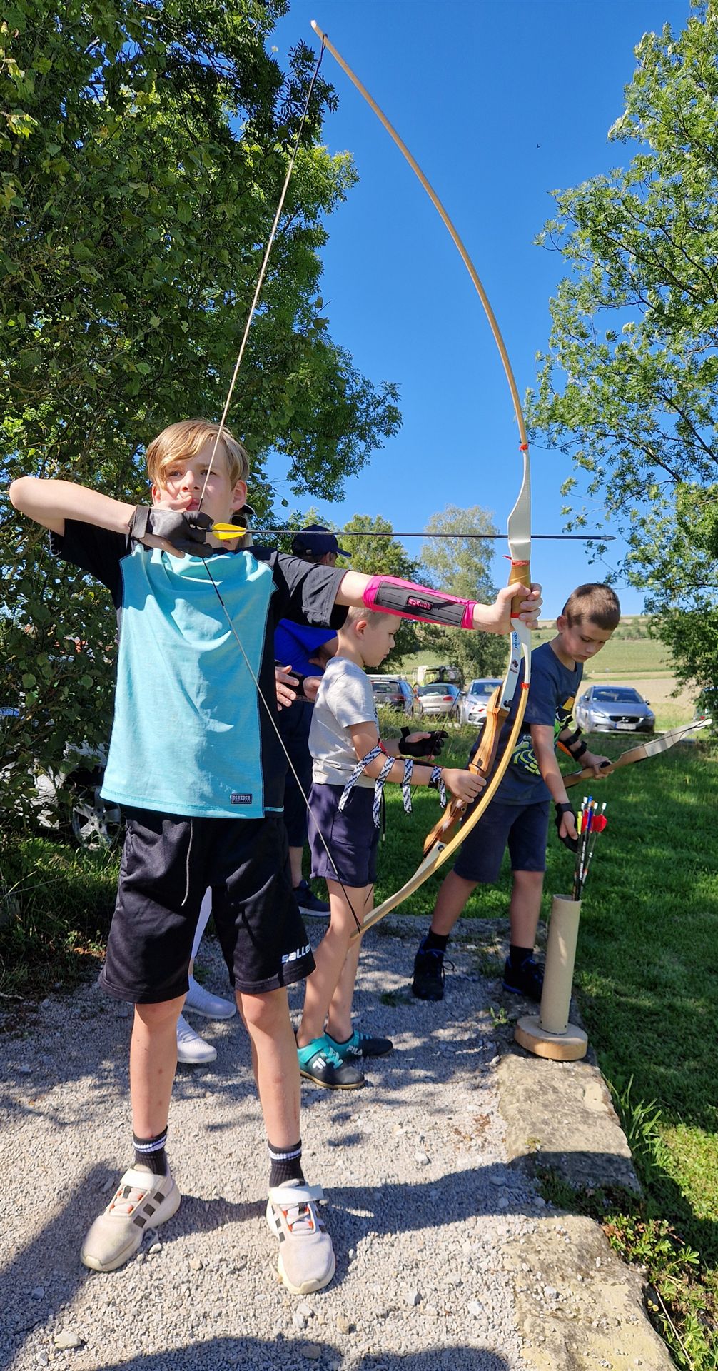 Gleich an mehreren Terminen durften die Kids bei herrlichem Wetter die Pfeile fliegen lassen. Zunächst stand allerdings eine Vermittlung der Grundlagen des Bogenschießens an. Dabei kamen natürlich auch die Sicherheitshinweise nicht zu kurz. Danach durften die jungen Schützinnen und Schützen kräftig üben und taten dieses mit viel Begeisterung. Als Ziele dienen dabei sowohl Scheiben als auch Luftballons.