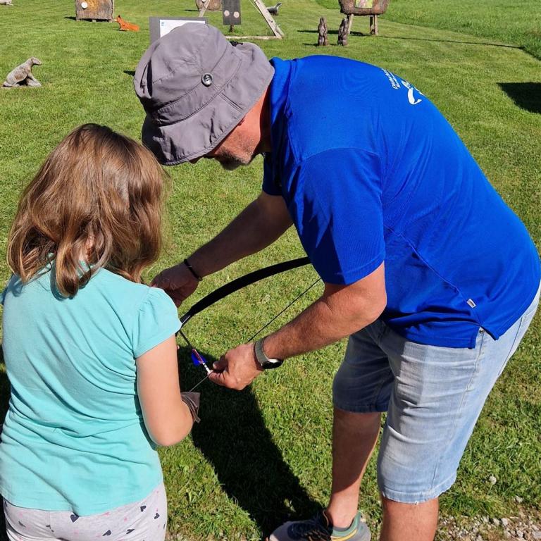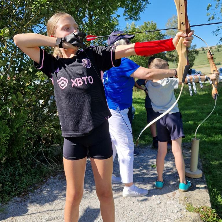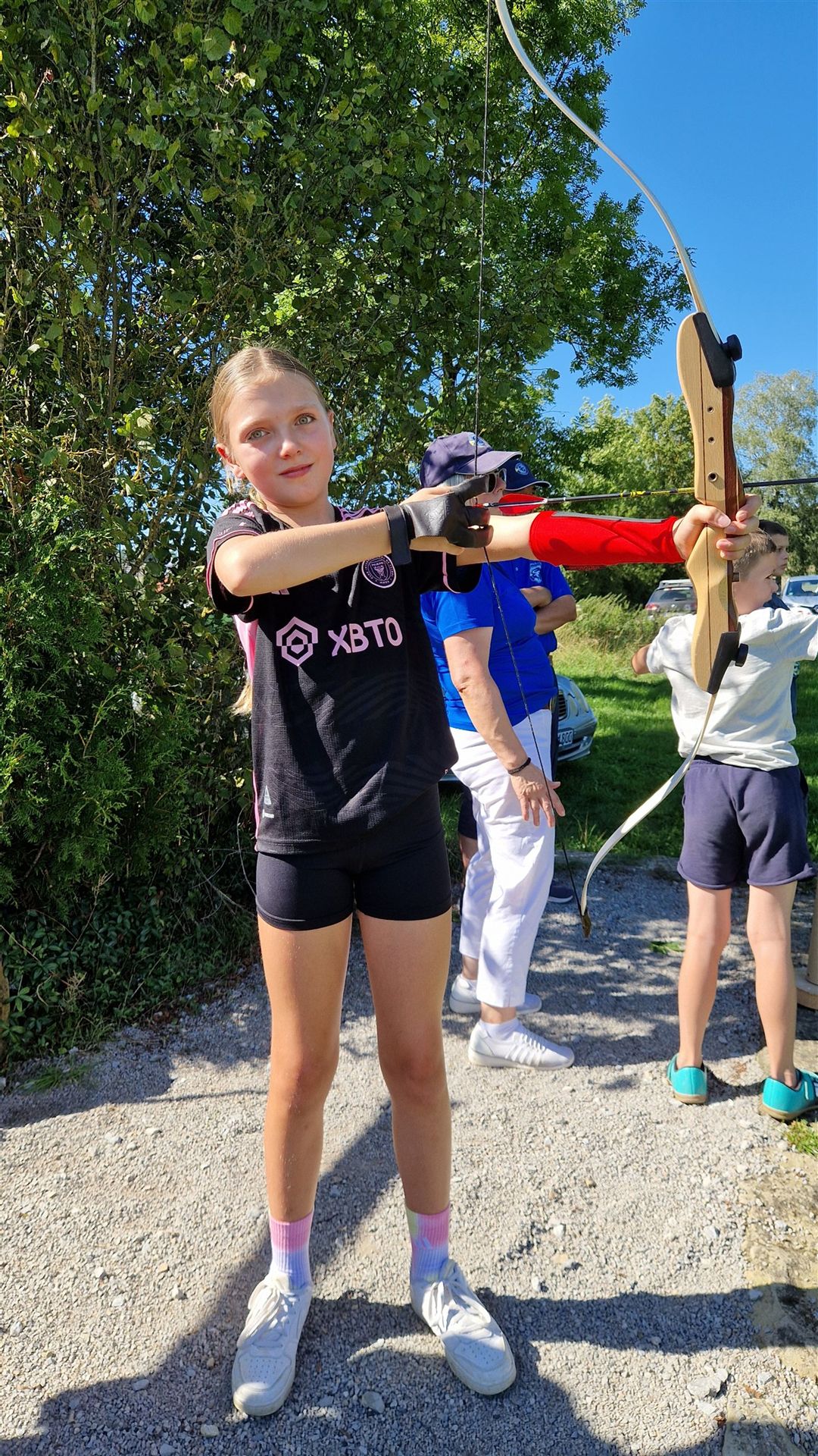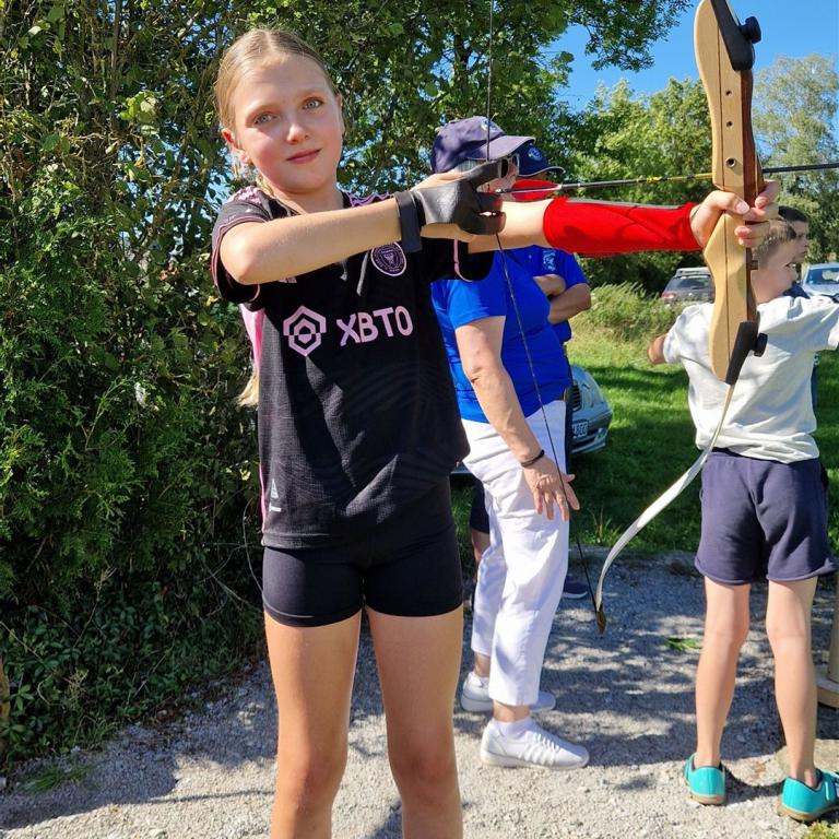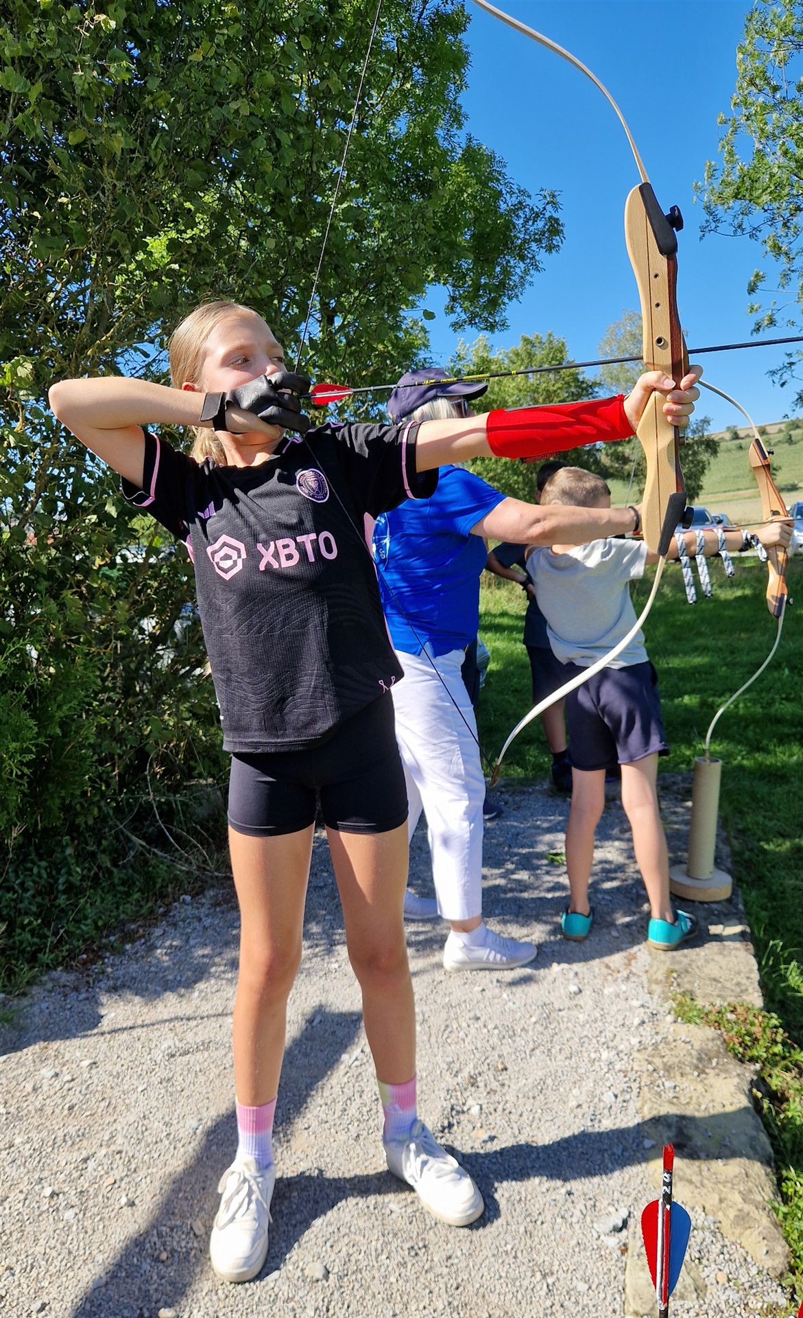 Gleich an mehreren Terminen durften die Kids bei herrlichem Wetter die Pfeile fliegen lassen. Zunächst stand allerdings eine Vermittlung der Grundlagen des Bogenschießens an. Dabei kamen natürlich auch die Sicherheitshinweise nicht zu kurz. Danach durften die jungen Schützinnen und Schützen kräftig üben und taten dieses mit viel Begeisterung. Als Ziele dienen dabei sowohl Scheiben als auch Luftballons.