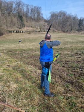 Ein alle ins Kill verabschiedete alle Teilnehmer, sodass der Schießbeginn pünktlich um 10.00 Uhr starten konnte. Insgesamt waren 32 Stationen ausgerufen worden. Hier wurde jede Ecke und Nische genutzt, um die Attraktivität des Parcours stets hochzuhalten. Geschossen wurde auf 3D Tiere, welche stellenweise exotisch anmuteten. So versteckte sich entlang eines Uferweges an der Jagst eine gefährliche Schnappschildkröte unter der Brücke. Weitere Ziele waren Luchs, Strauß, Löwe und Hirsch, die ganz ihrer Natur wunderschön abgebildet wurden. Alle Teilnehmer freuten sich ebenfalls über reichlich warmes und kaltes Essen sowie Getränke, die uns an der Verpflegungsstation des Sportplatzes angeboten wurden. Es war ein gelungenes Turnier, das bei den Schützen sehr große Anerkennung fand.
