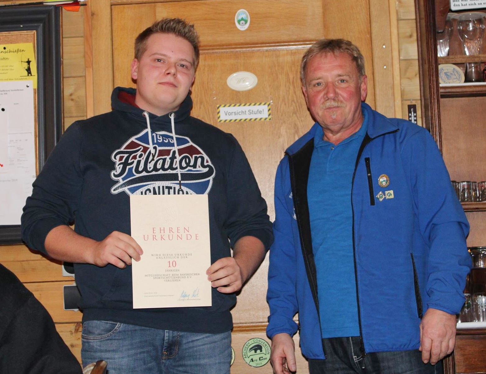 Philipp Neser erhielt ein kleines Präsent für den 1. Platz bei der 3D Bezirksmeisterschaft 2018 des Mittelfränkischer Schützenbund in der Klasse: