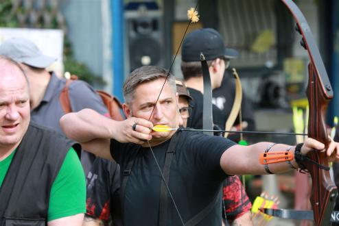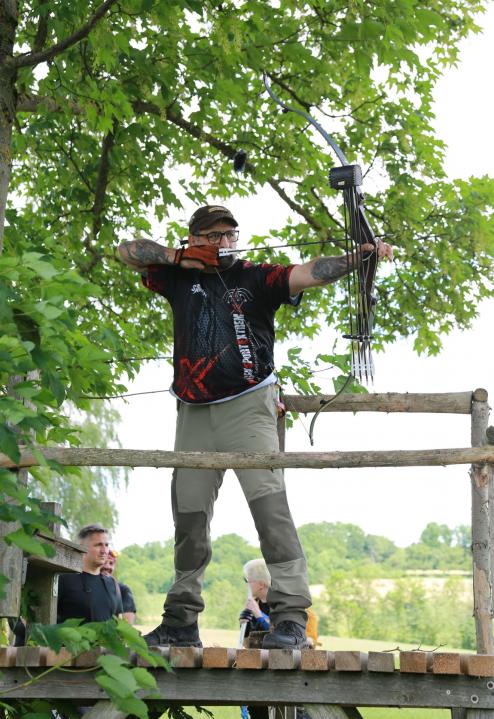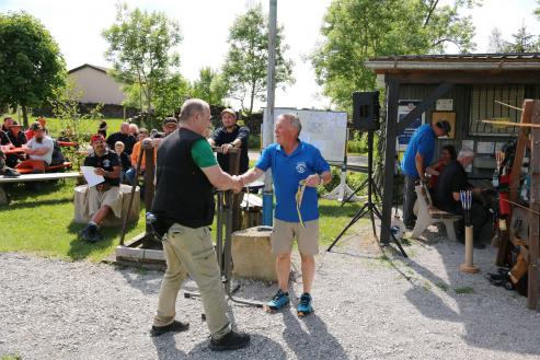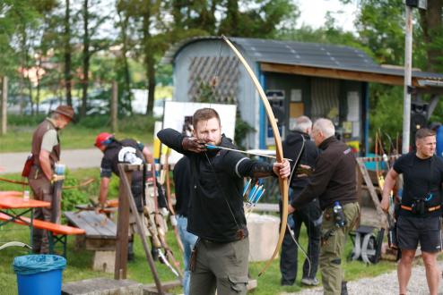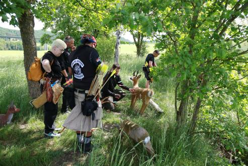 Bevor wir uns auf die Pirsch und in die Wildnis begaben, wurden alle Sportler:innen um 10.00 Uhr morgens begrüßt und nach einer Rede unseres Vorstands Dietmar Hofacker Herzlich Willkommen geheißen. Nach diesem freudigen Ereignis und der Vergabe dringend benötigter Café-, Brötchen- und Kuchengutscheine konnten sich alle gestärkt und frohen Mutes auf den Einschießplatz der Diebacher Edelknechte begeben. Nach einer kurzen Einweisung wurden bereits die ersten Ziele in 20 bis 50 Meter hochfrequent beschossen, sodass die Bogensehnen vibrierten. Mit dem Herzen des Siegers begaben sich alle auf den schwierigen 3D Parcours Lerchenbuck, um bei widrigen Windverhältnissen unsere standfesten Tierprofile Damhirsch, Honigbär sowie Springbock zu beschießen. Mit einem glücklichen Händchen hatte dies keineswegs zu tun, sondern mit jahrelanger Erfahrung und Zielsicherheit. Dies konnte nunmehr jeder Teilnehmer:in unter Beweis stellen. Auch zwischendurch wurde für genügend flüssige und feste Grundnahrung gesorgt, wofür wir uns ganz herzlich nochmals bei Mihaly Vas bedanken möchten. So gestärkt trafen viele ins Ziel und vergaßen fast die Zeit. Einige Sportschützen waren so konzentriert, dass sie selbst die Wegstärkung übersahen. Umso hungriger waren einige Teilnehmer:innen nach diesem Freiluftspektakel, der alles von ihnen abverlangte. Keine Sorge, nach deren Rückkehr bot der leere Magen viel Platz für die angebotenen Burger, Kuchen und andere Annehmlichkeiten. Es war wieder einmal ein großer Erfolg, das siebente Diebacher Freundschatzturnier veranstalten zu dürfen. Unser herzliches Dankeschön gilt allen Helfern sowie den Sportlern selbst, die mit Faszination den Bogensport betreiben. Für uns, die Diebacher Edelknechte, ist dies das größte Anliegen.