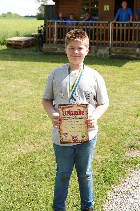 Nachdem die Schießkarten Ausgewertet waren fand die Siegerehrung statt. Die ersten Drei in jeder Bogenklasse erhielten eine Medaille und eine Urkunde mit der erreichten Punktzahl. Von Schüler über Jugend und Erwachsene , dabei unterteilt in Frauen- und Männer- Wertung. Zum Anschluss wurden noch 10 Gutscheine für einen Parcours- Durchgang unter den Teilnehmern verlost. Es war ein gelungenes Turnier, das bei den Schützen sehr große Anerkennung fand. Wir bekamen viel positives Feedback. Die Diebacher Edelknechte freuen sich schon auf das 8. Freundschaftsturnier. Die Ausschreibung hierzu beginnt im Herbst.