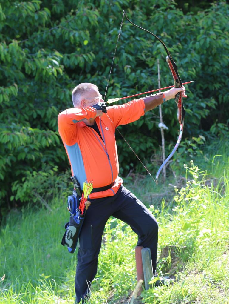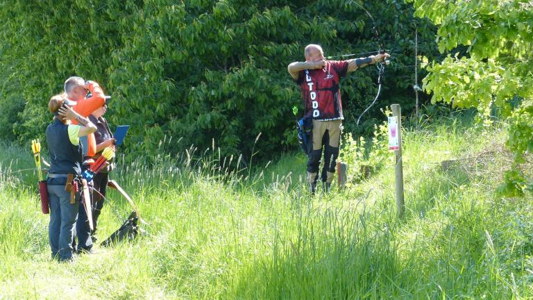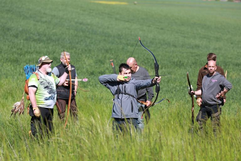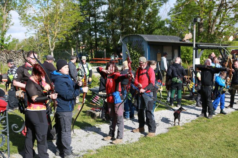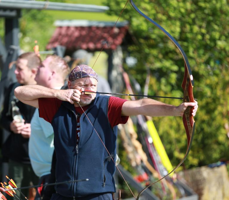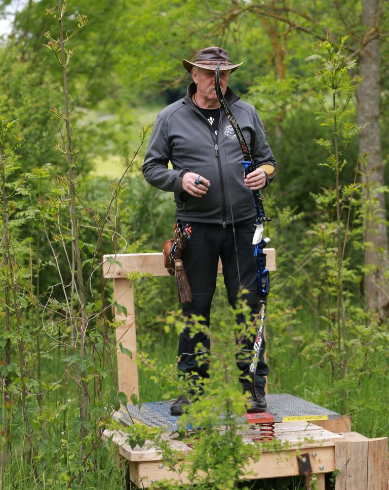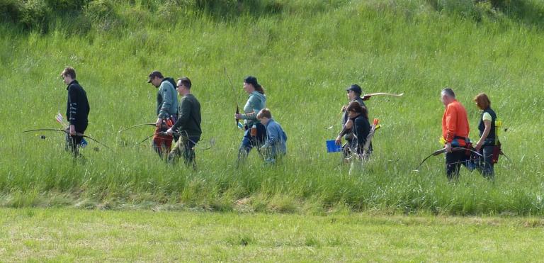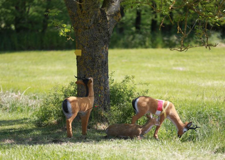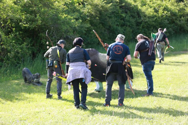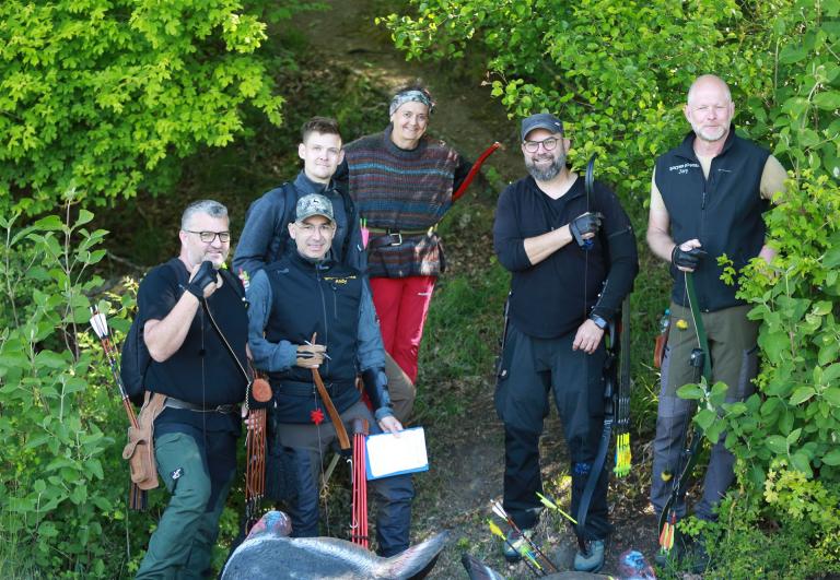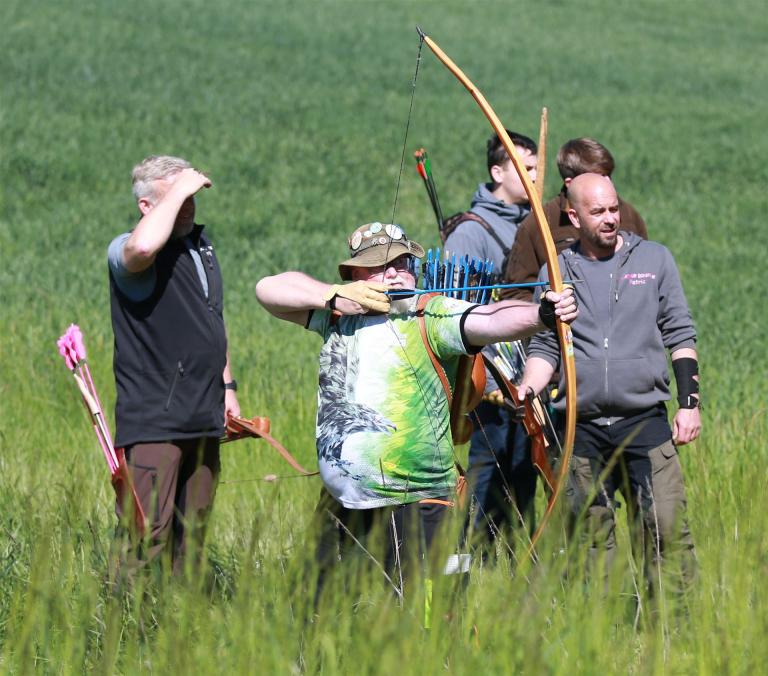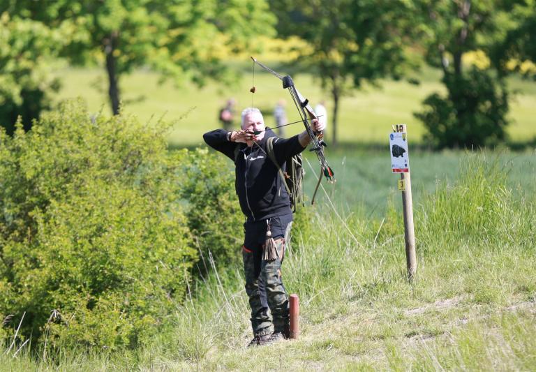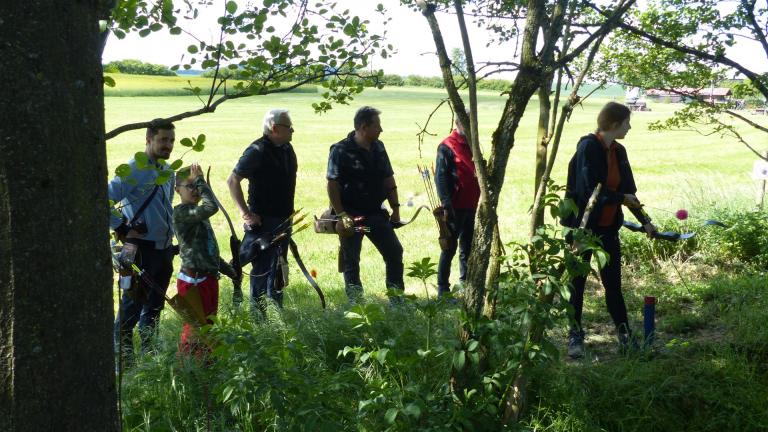 Um 10 Uhr startete der Wettbewerb auf dem 3D Bogenparcours Lerchenbuck. Dieser präsentierte sich mit 32 Stationen sehr abwechslungsreich. Als Ziele dienten vor herrlicher Naturkulisse dreidimensionale Figuren von Bären, Fasanen, Hasen, Ottern, Rehen, Haubenhühnern, Wölfen sowie ein Moschusochse. Dabei ermöglichte das hochstehende Gras reizvolle Schussfenster. Ein großes Lob bekamen wir für die neu gestellten Ziel am Wasser, was für viele auch eine Herausforderung war den wer das Ziel verfehlte war oft gezwungen ins Wasser zu steigen!