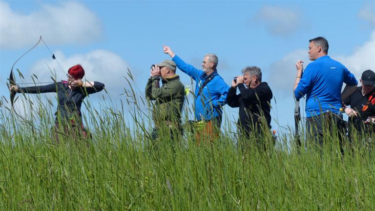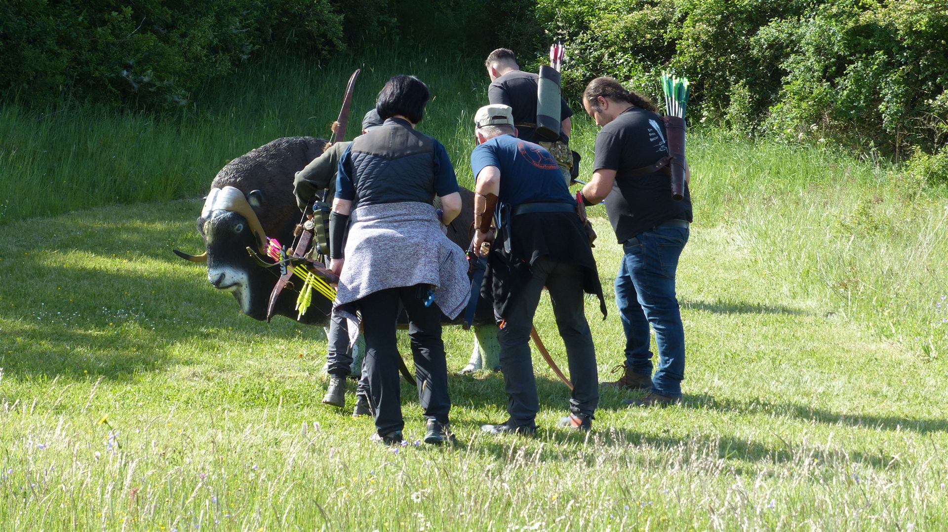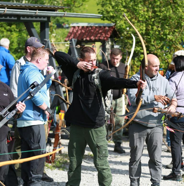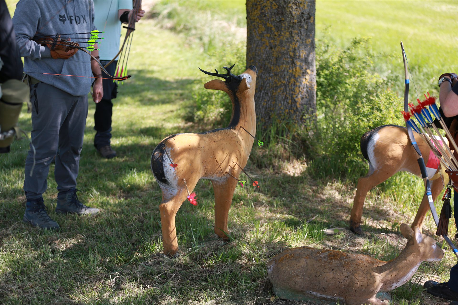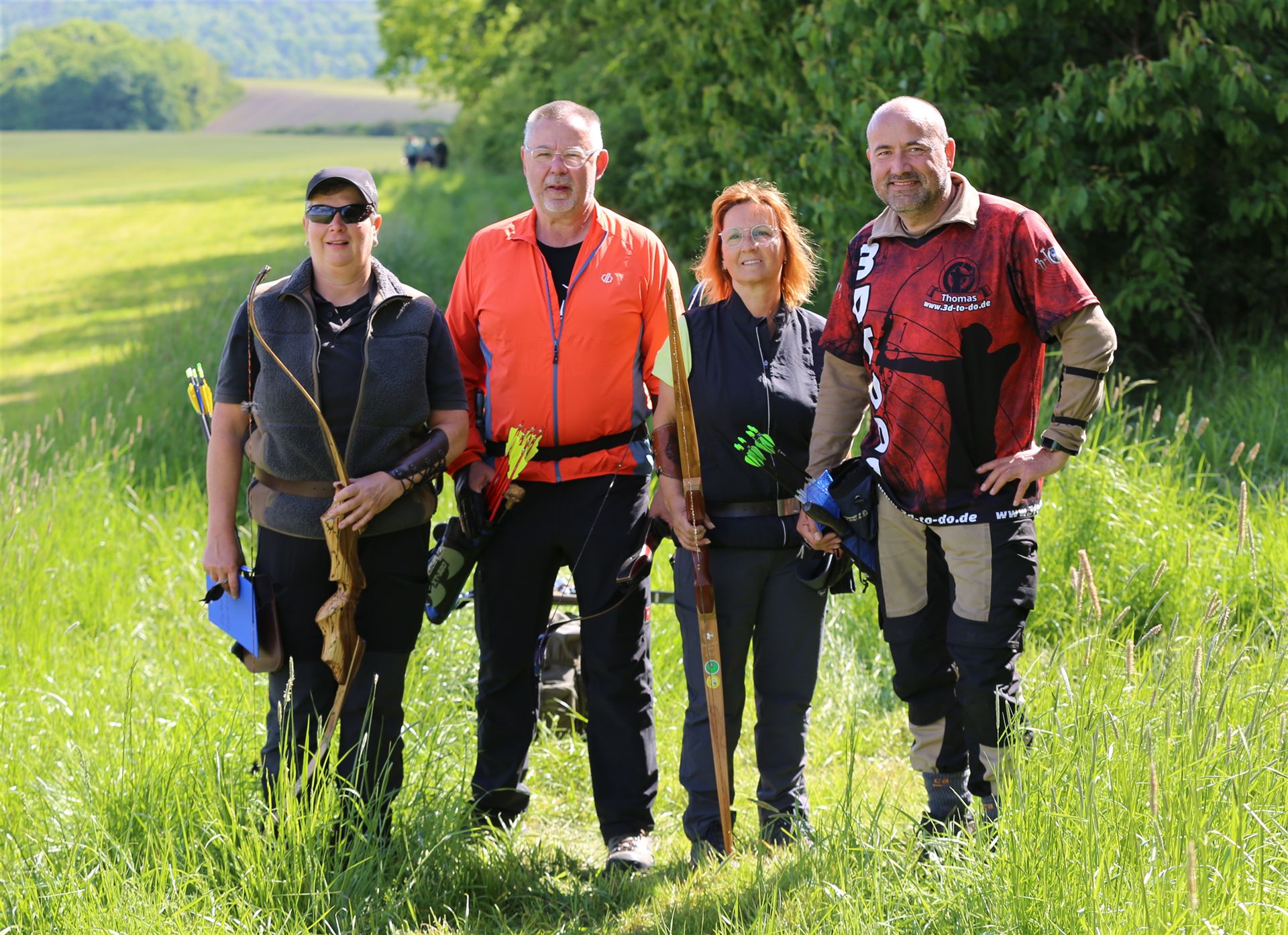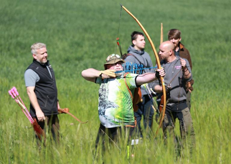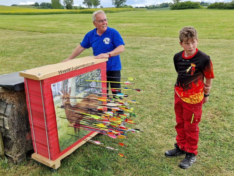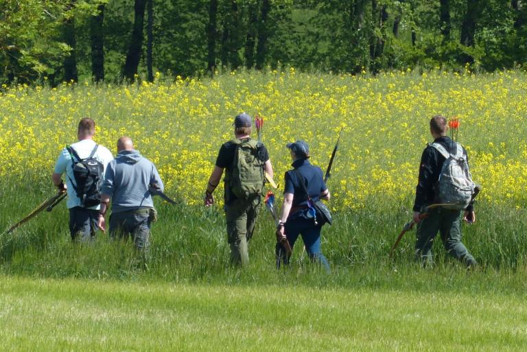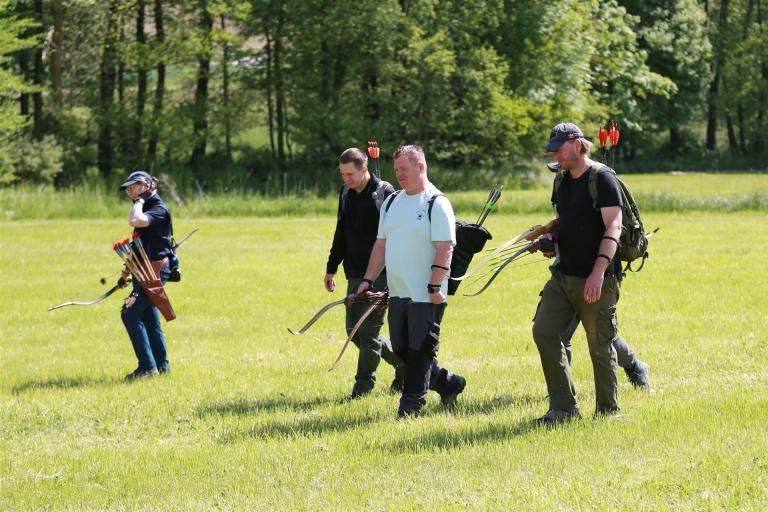 Um 10 Uhr startete der Wettbewerb auf dem 3D Bogenparcours Lerchenbuck. Dieser präsentierte sich mit 32 Stationen sehr abwechslungsreich. Als Ziele dienten vor herrlicher Naturkulisse dreidimensionale Figuren von Bären, Fasanen, Hasen, Ottern, Rehen, Haubenhühnern, Wölfen sowie ein Moschusochse. Dabei ermöglichte das hochstehende Gras reizvolle Schussfenster. Ein großes Lob bekamen wir für die neu gestellten Ziel am Wasser, was für viele auch eine Herausforderung war den wer das Ziel verfehlte war oft gezwungen ins Wasser zu steigen!