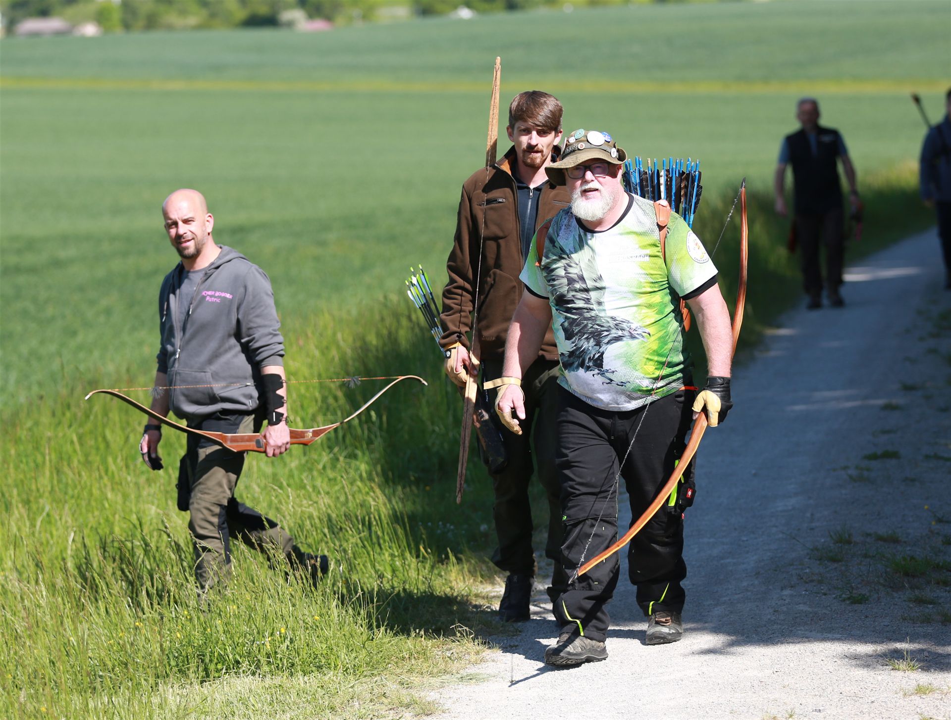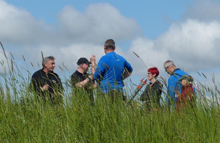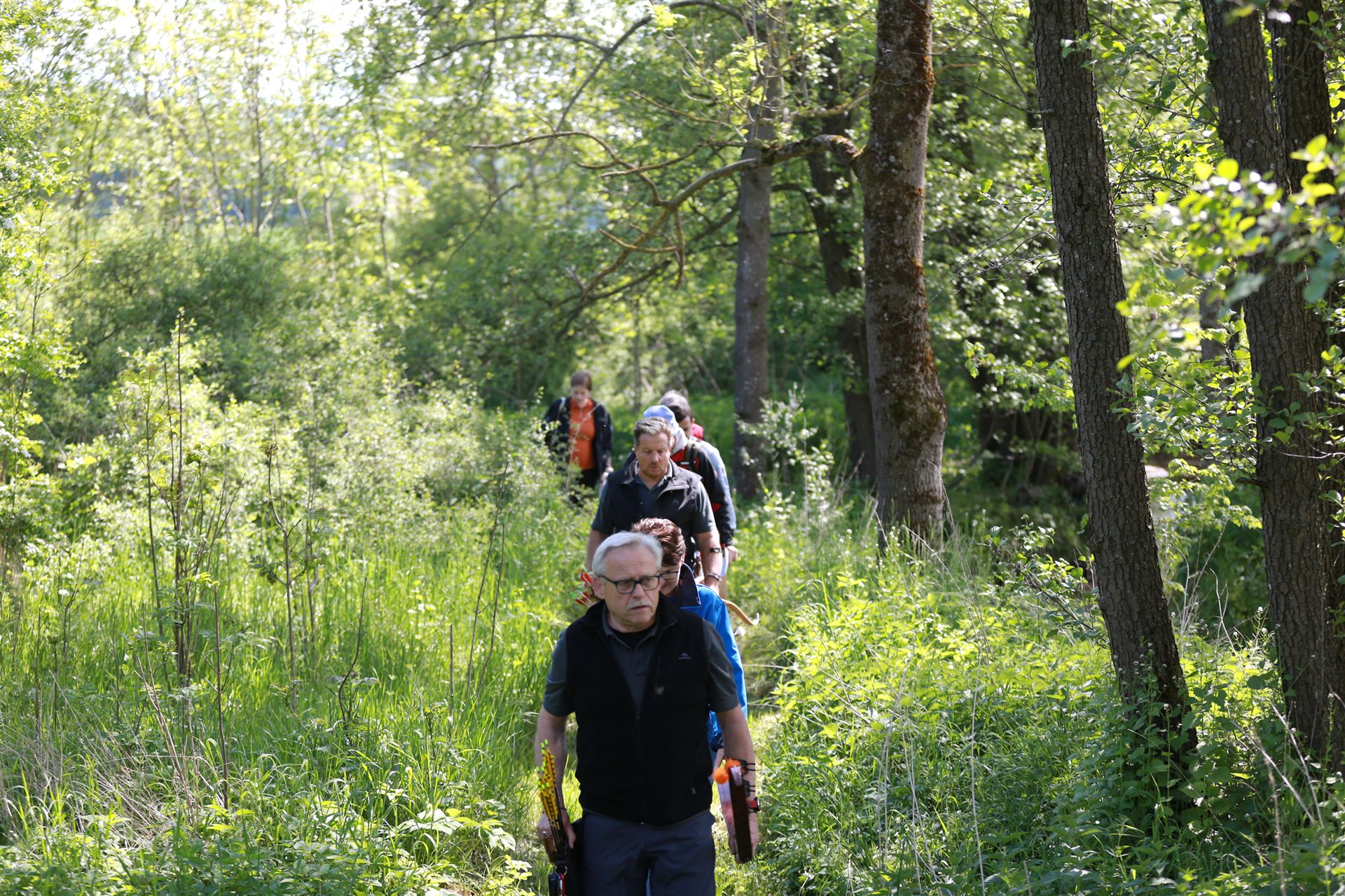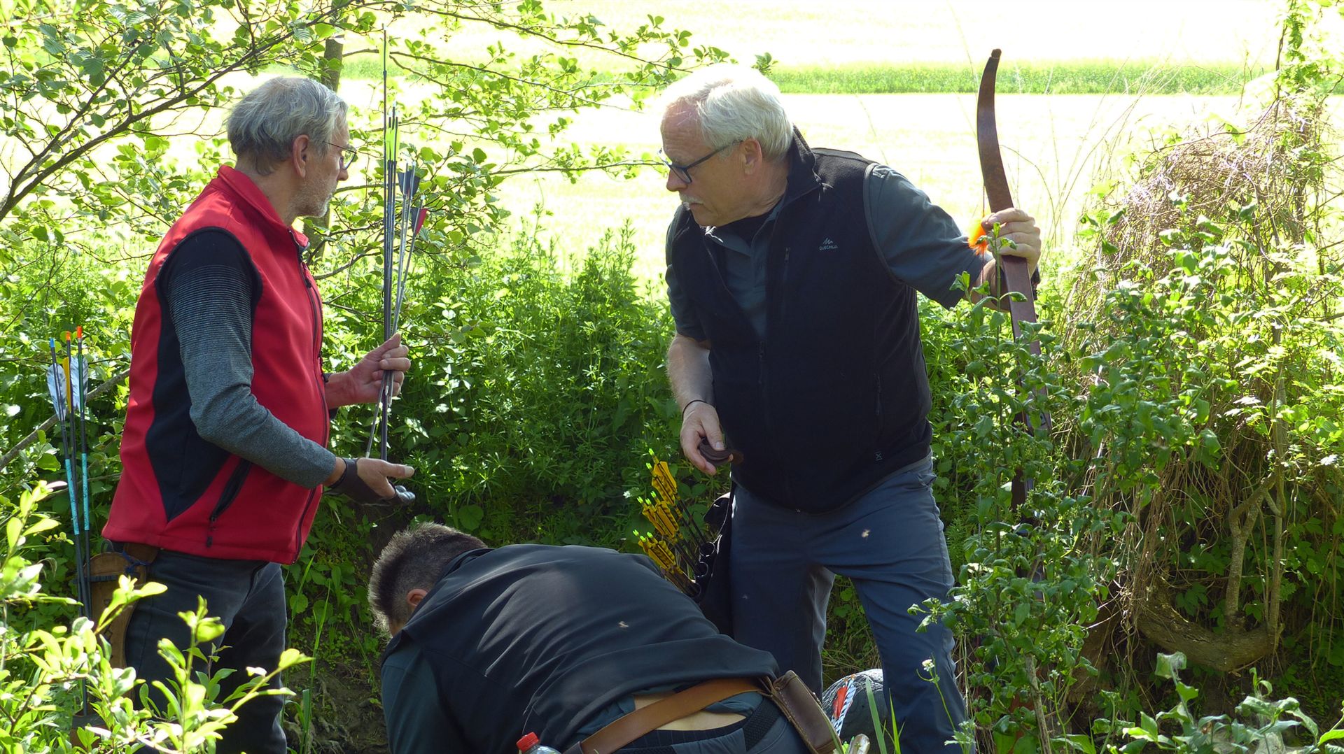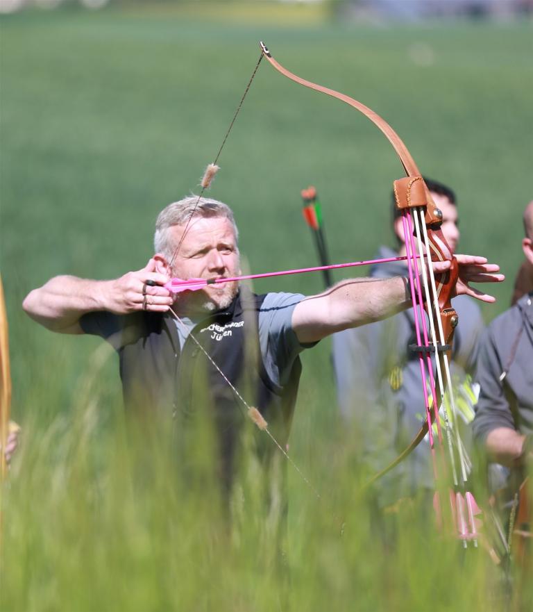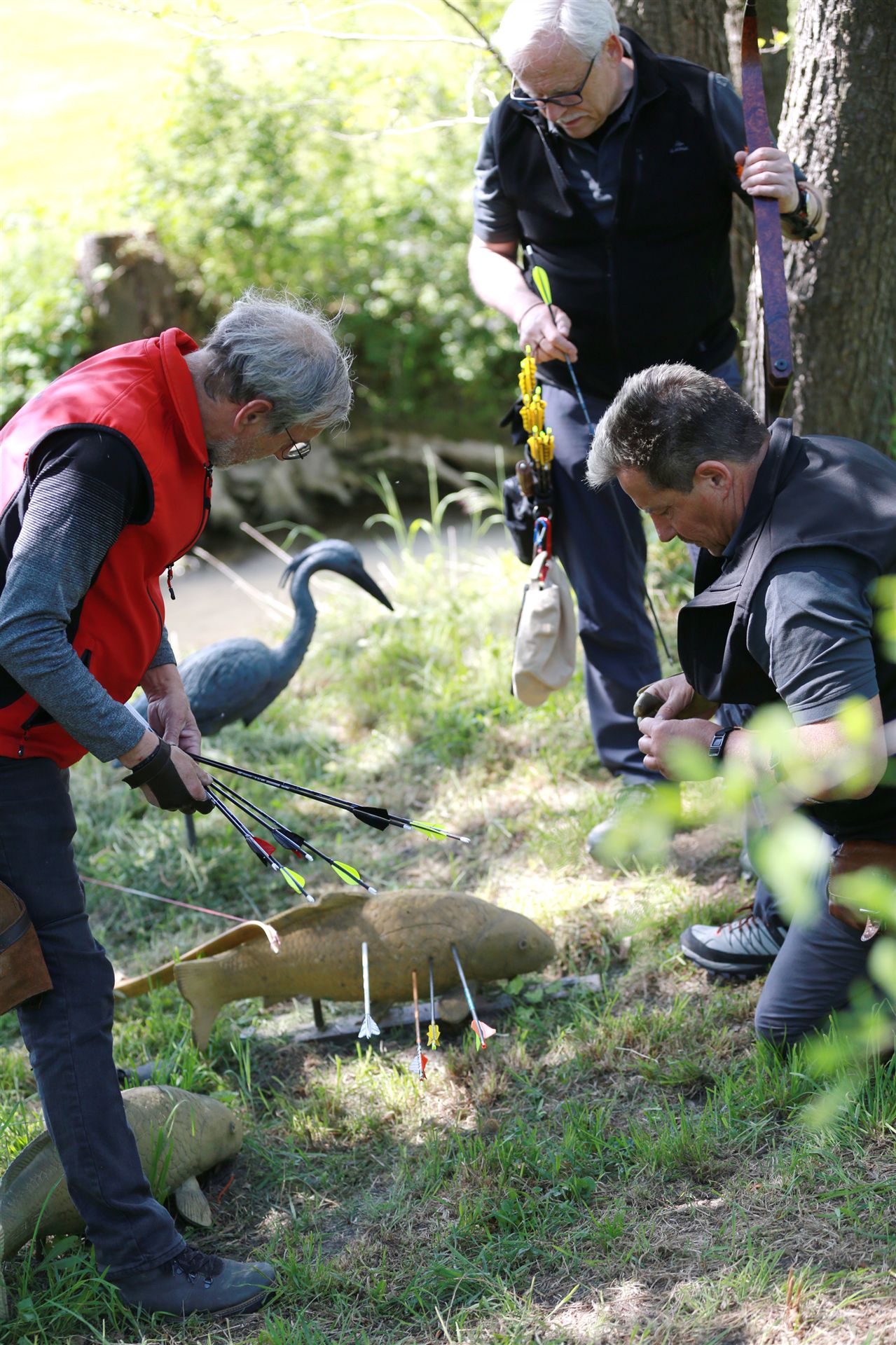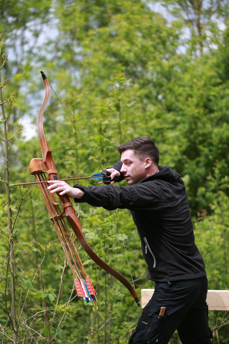 Um 10 Uhr startete der Wettbewerb auf dem 3D Bogenparcours Lerchenbuck. Dieser präsentierte sich mit 32 Stationen sehr abwechslungsreich. Als Ziele dienten vor herrlicher Naturkulisse dreidimensionale Figuren von Bären, Fasanen, Hasen, Ottern, Rehen, Haubenhühnern, Wölfen sowie ein Moschusochse. Dabei ermöglichte das hochstehende Gras reizvolle Schussfenster. Ein großes Lob bekamen wir für die neu gestellten Ziel am Wasser, was für viele auch eine Herausforderung war den wer das Ziel verfehlte war oft gezwungen ins Wasser zu steigen!