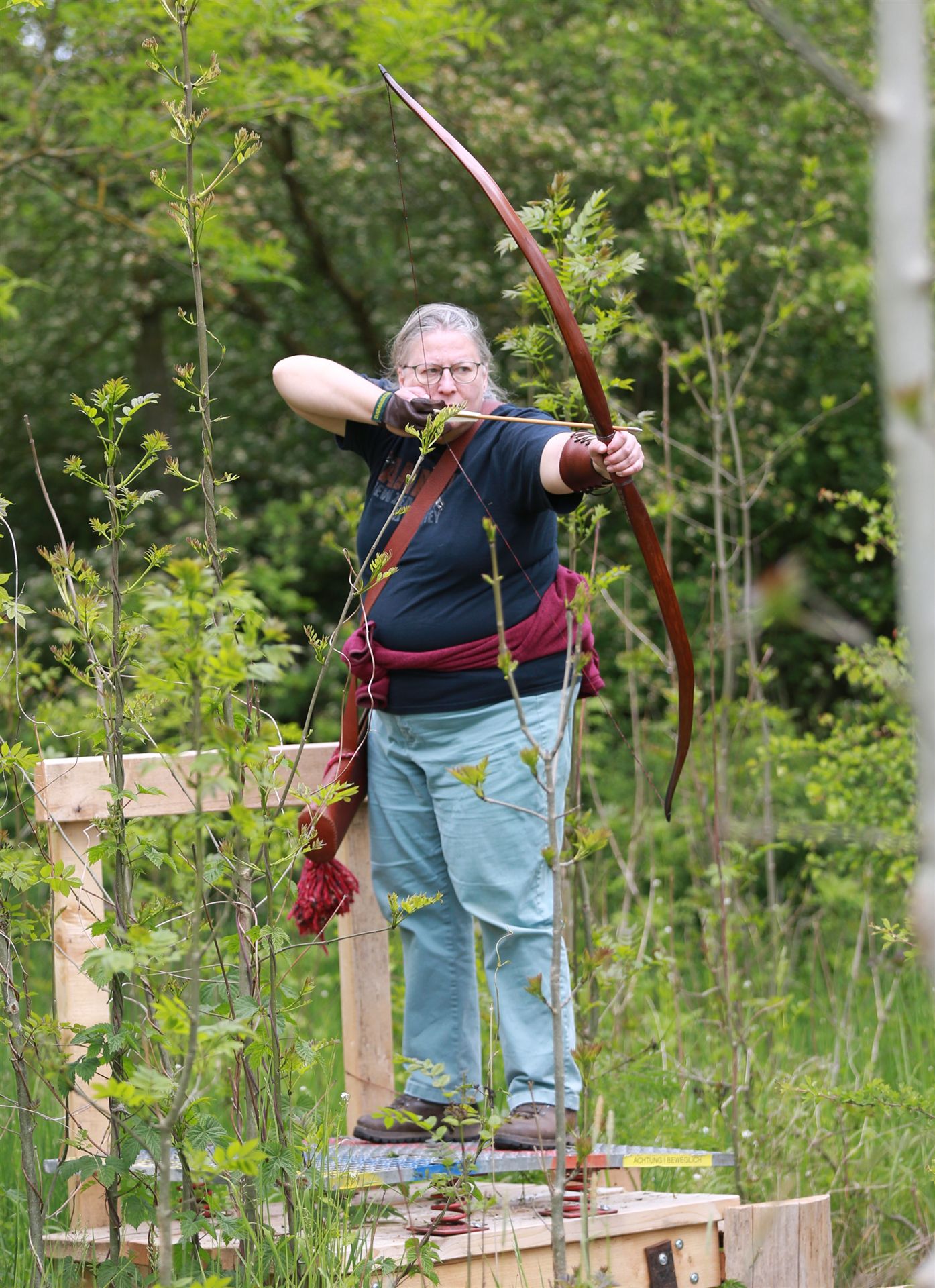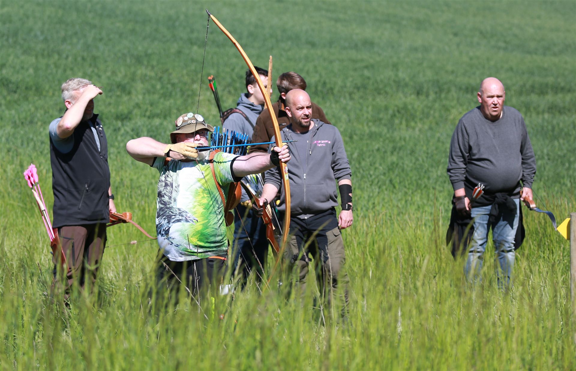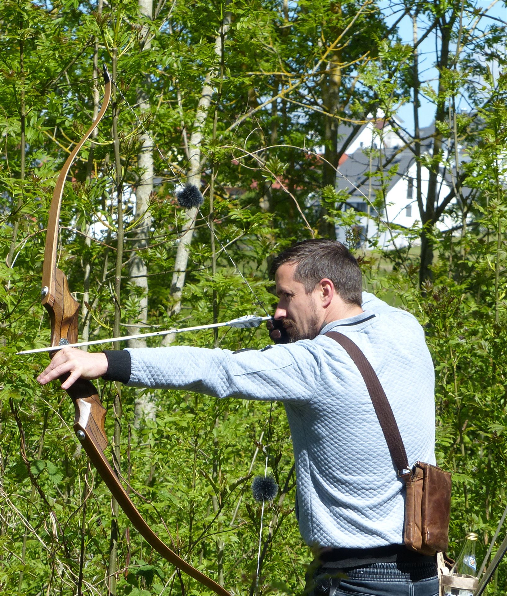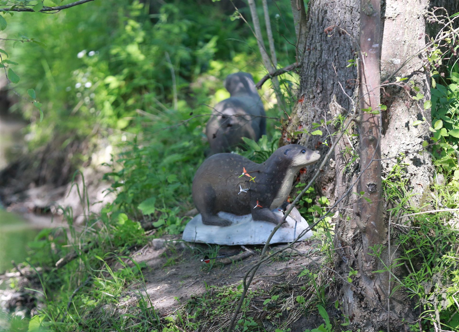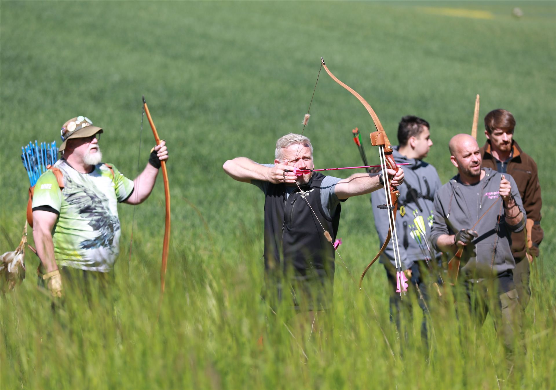 Um 10 Uhr startete der Wettbewerb auf dem 3D Bogenparcours Lerchenbuck. Dieser präsentierte sich mit 32 Stationen sehr abwechslungsreich. Als Ziele dienten vor herrlicher Naturkulisse dreidimensionale Figuren von Bären, Fasanen, Hasen, Ottern, Rehen, Haubenhühnern, Wölfen sowie ein Moschusochse. Dabei ermöglichte das hochstehende Gras reizvolle Schussfenster. Ein großes Lob bekamen wir für die neu gestellten Ziel am Wasser, was für viele auch eine Herausforderung war den wer das Ziel verfehlte war oft gezwungen ins Wasser zu steigen!