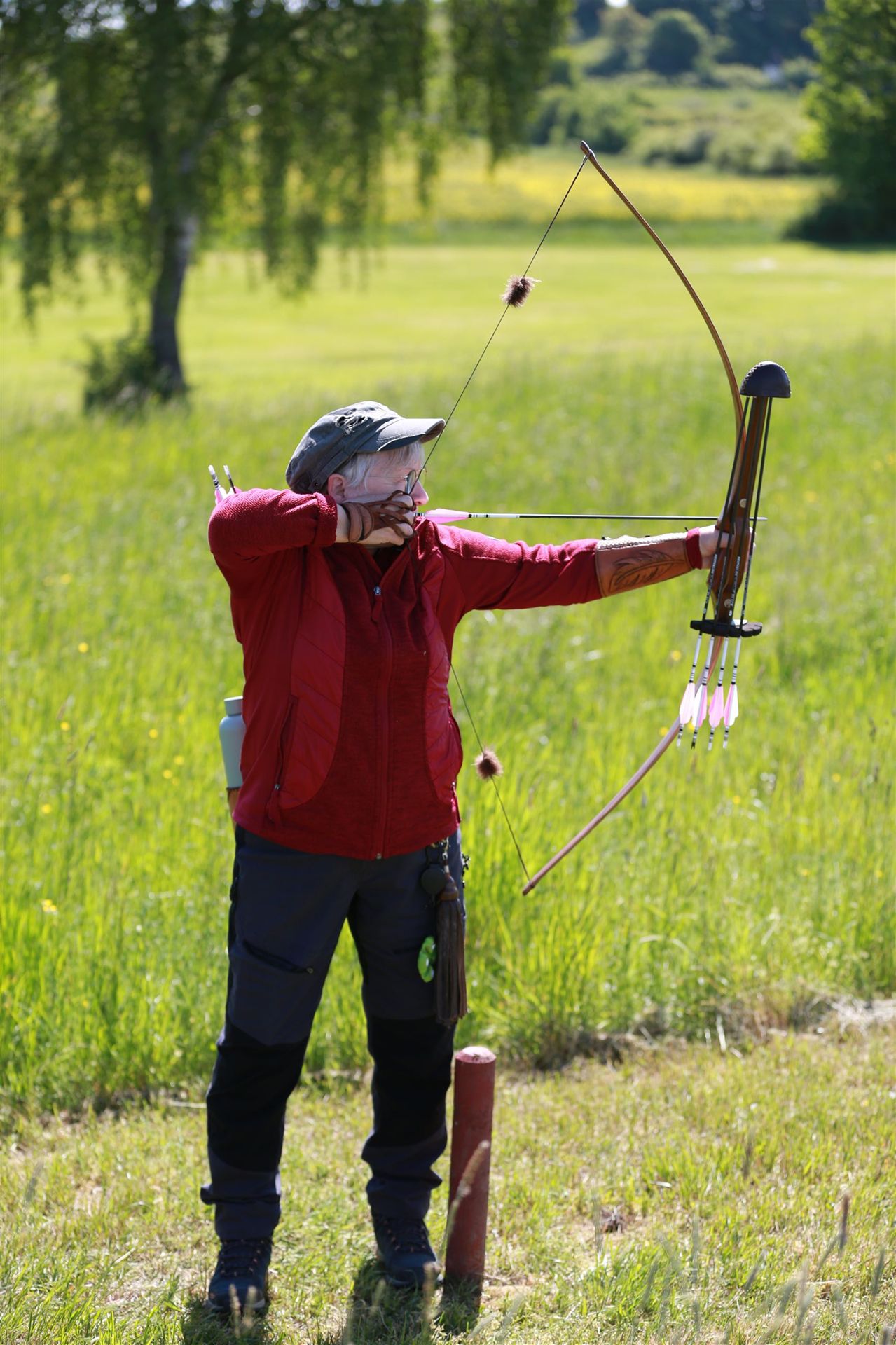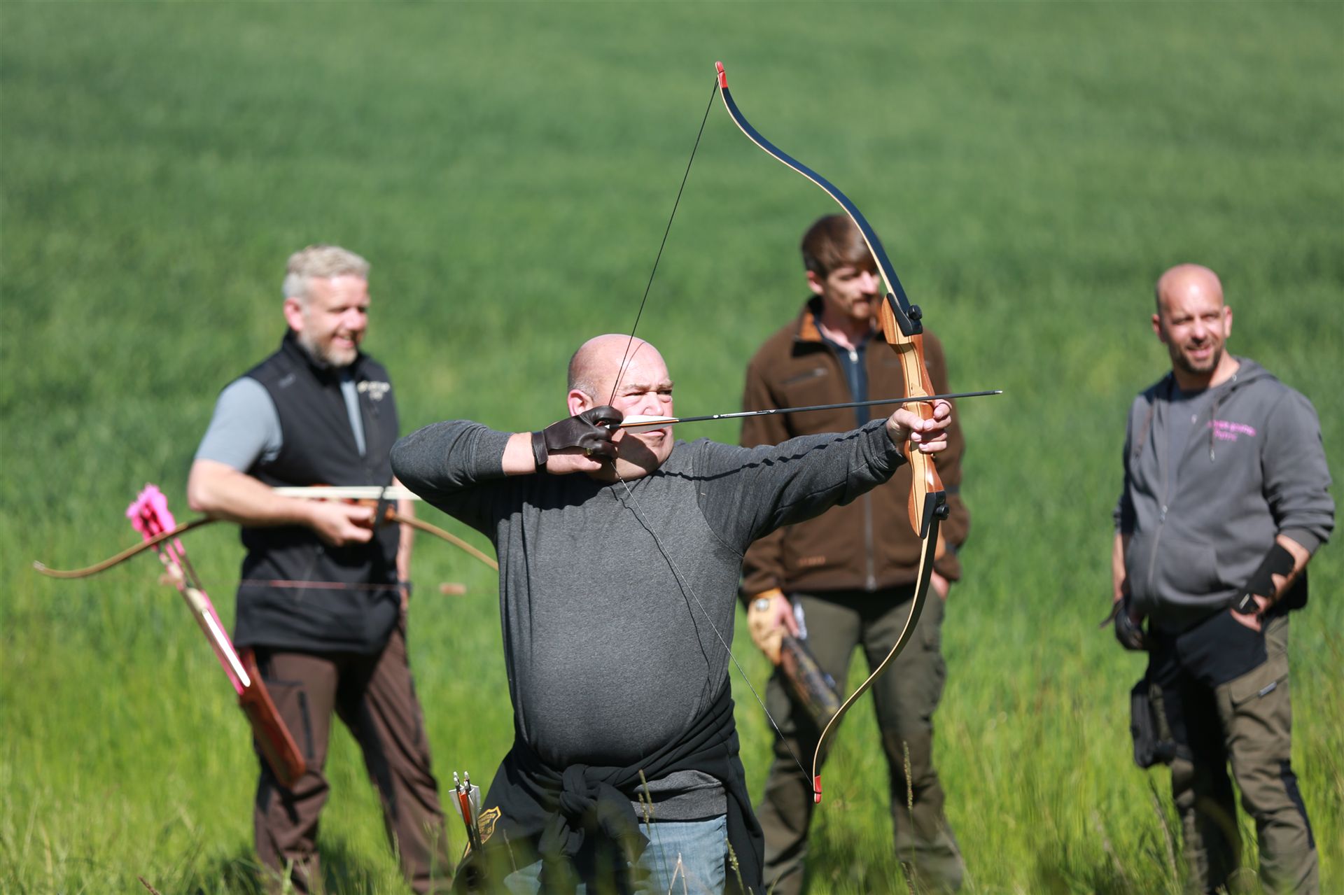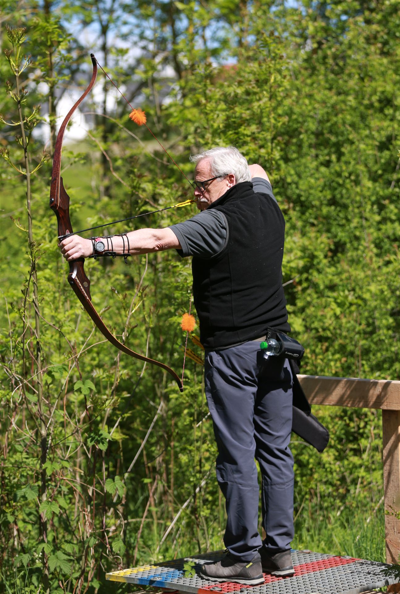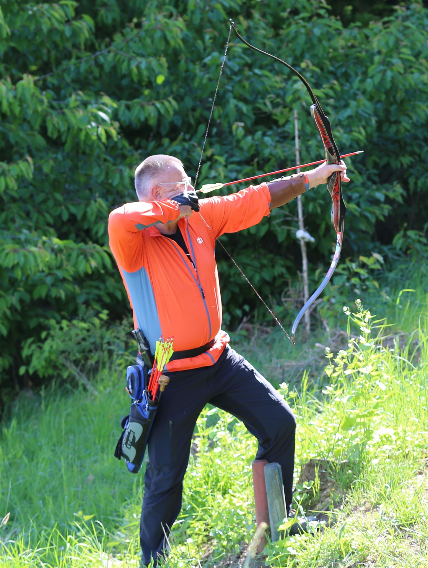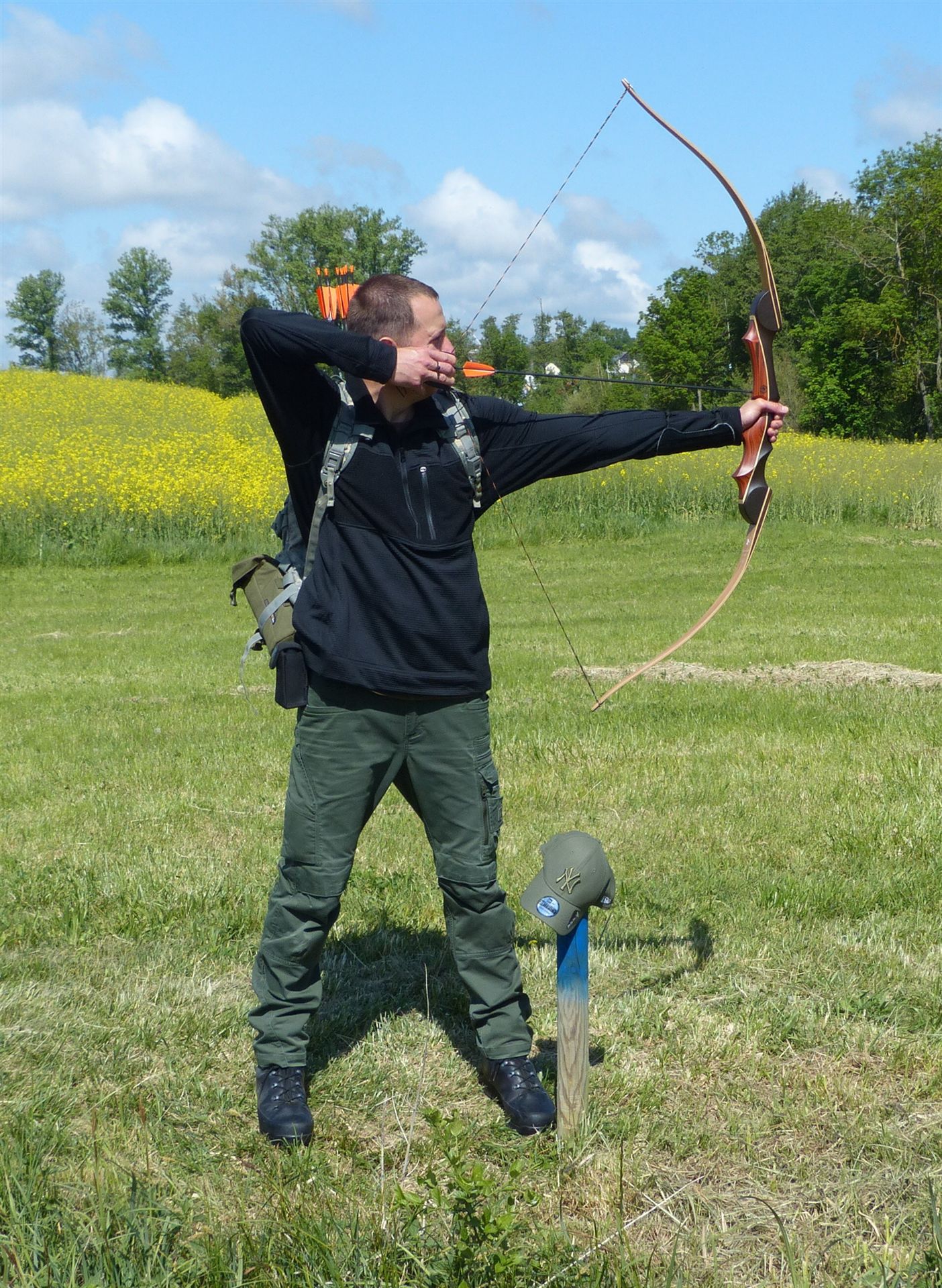 Um 10 Uhr startete der Wettbewerb auf dem 3D Bogenparcours Lerchenbuck. Dieser präsentierte sich mit 32 Stationen sehr abwechslungsreich. Als Ziele dienten vor herrlicher Naturkulisse dreidimensionale Figuren von Bären, Fasanen, Hasen, Ottern, Rehen, Haubenhühnern, Wölfen sowie ein Moschusochse. Dabei ermöglichte das hochstehende Gras reizvolle Schussfenster. Ein großes Lob bekamen wir für die neu gestellten Ziel am Wasser, was für viele auch eine Herausforderung war den wer das Ziel verfehlte war oft gezwungen ins Wasser zu steigen!