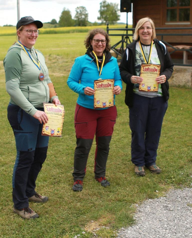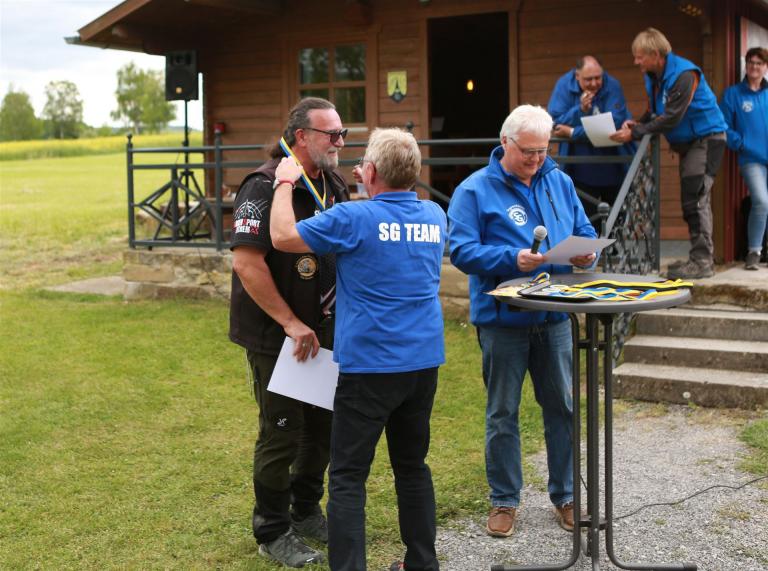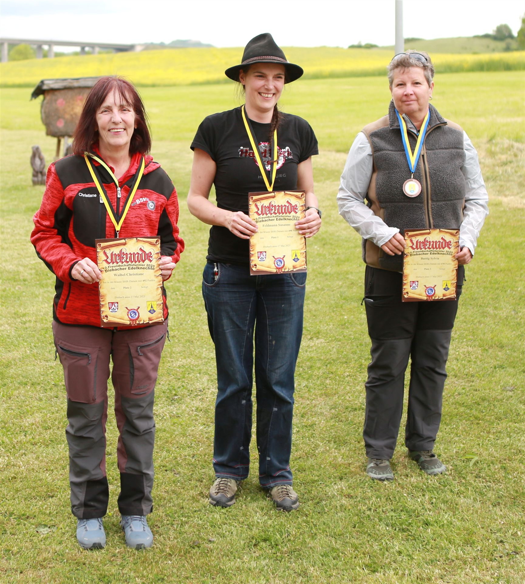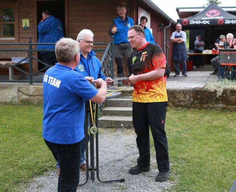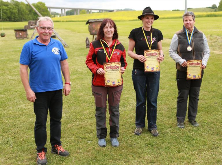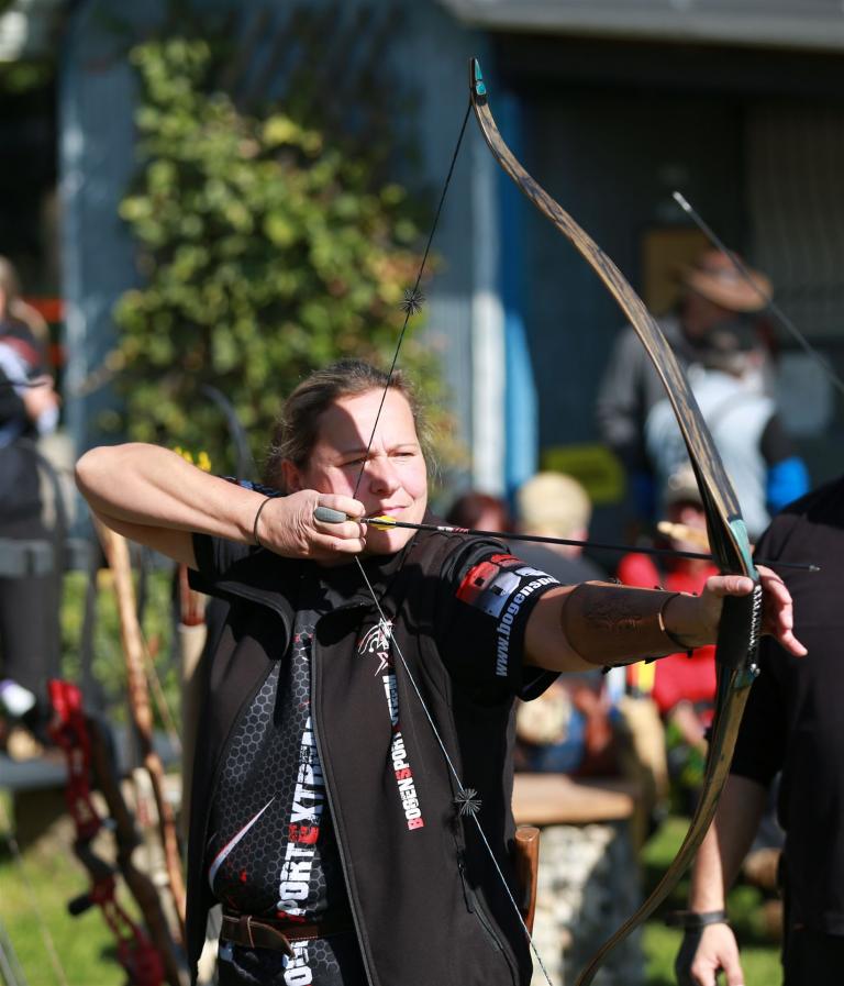 Anschließend folgte die Siegerehrung, bei der die Top 3 in jeder Bogenklasse eine Medaille und Urkunde erhielten. Mit 594 Punkten sicherte sich Gußner Stefan vom TSV Schopfloch bei den Männern den Sieg in der mit 52 Teilnehmern besonders beliebten Bogenklasse Bowhunter Recurve (BHR). Bei den Frauen triumphierte Feldmann Susanne (Tradbows Hersbruck) mit 498 Zählern in dieser Klasse und konnte die Weltmeisterin Christiane Waibel mit 492 Punkten auf den zweiten Platz verweisen.
