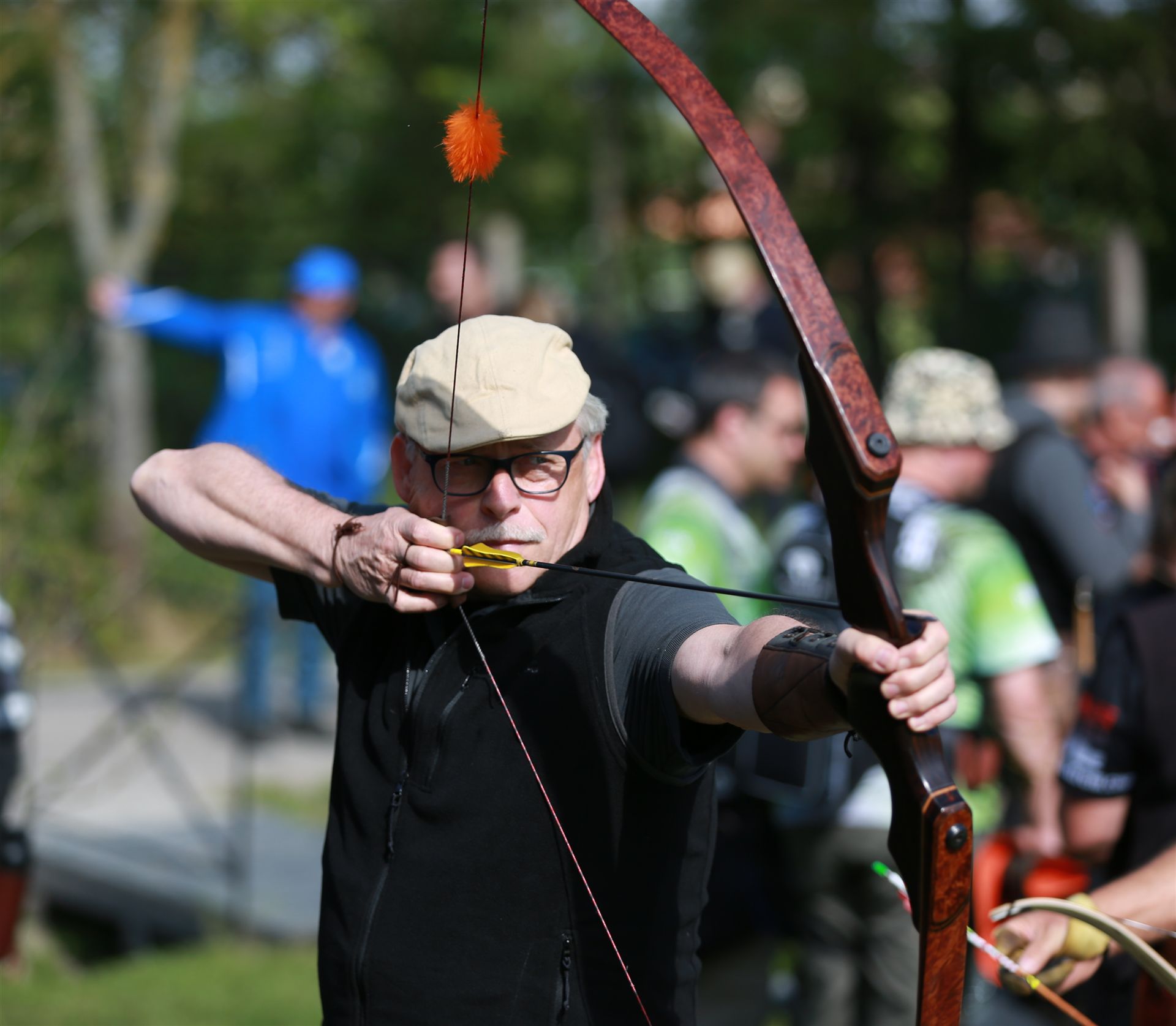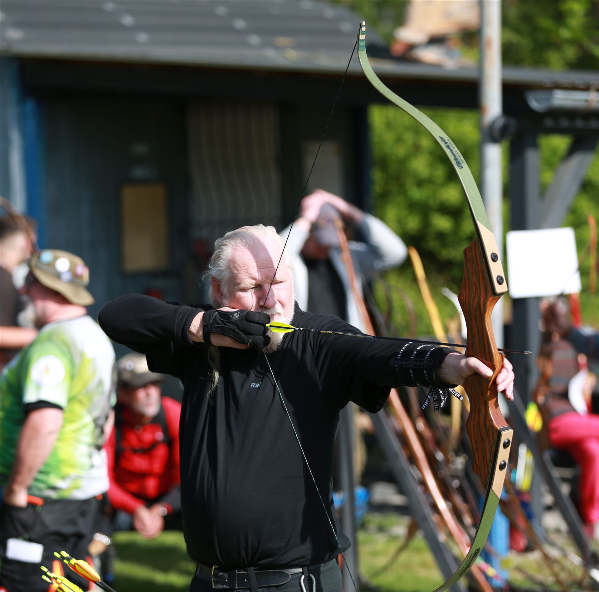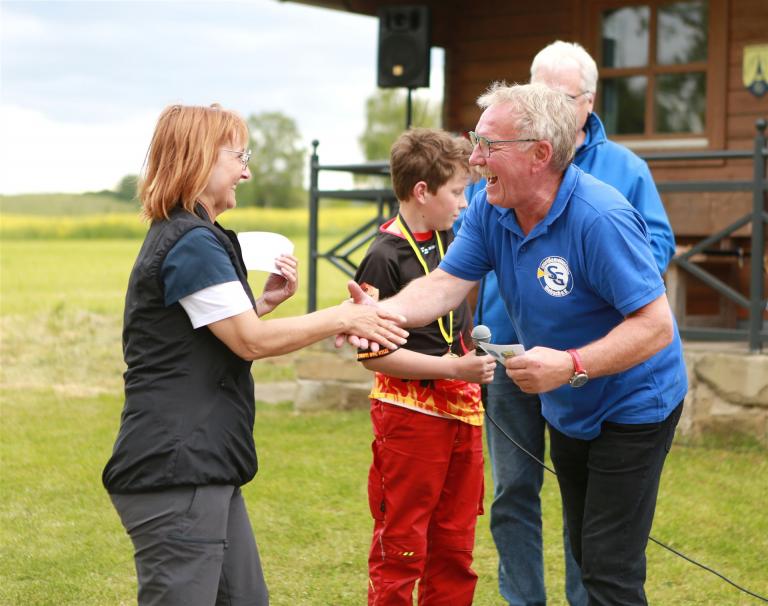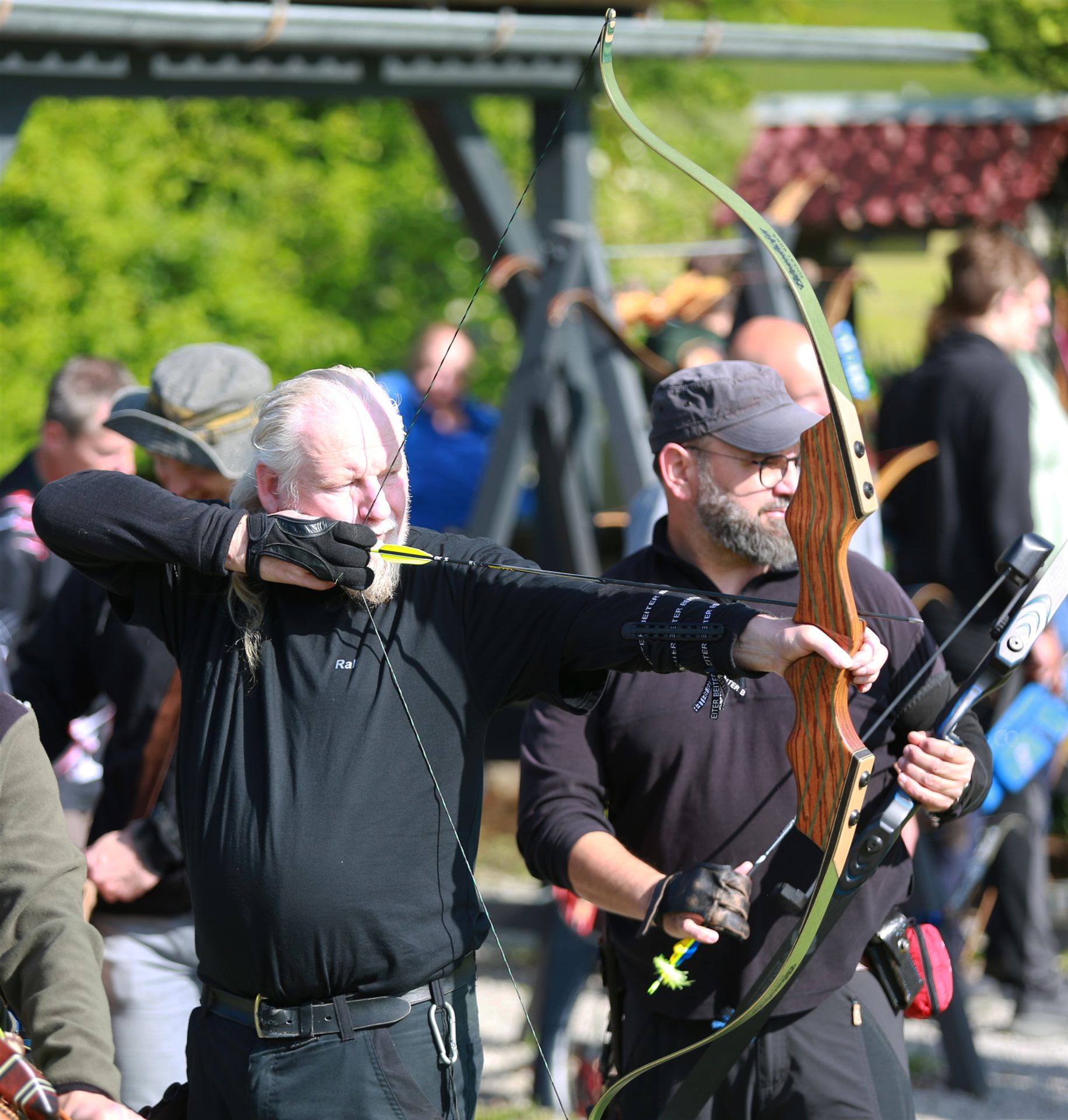 Anschließend folgte die Siegerehrung, bei der die Top 3 in jeder Bogenklasse eine Medaille und Urkunde erhielten. Mit 594 Punkten sicherte sich Gußner Stefan vom TSV Schopfloch bei den Männern den Sieg in der mit 52 Teilnehmern besonders beliebten Bogenklasse Bowhunter Recurve (BHR). Bei den Frauen triumphierte Feldmann Susanne (Tradbows Hersbruck) mit 498 Zählern in dieser Klasse und konnte die Weltmeisterin Christiane Waibel mit 492 Punkten auf den zweiten Platz verweisen.