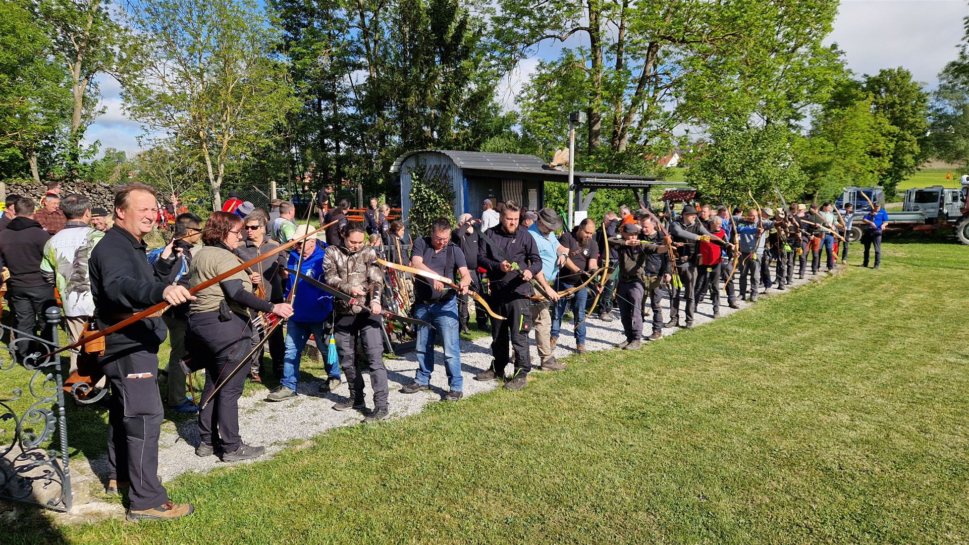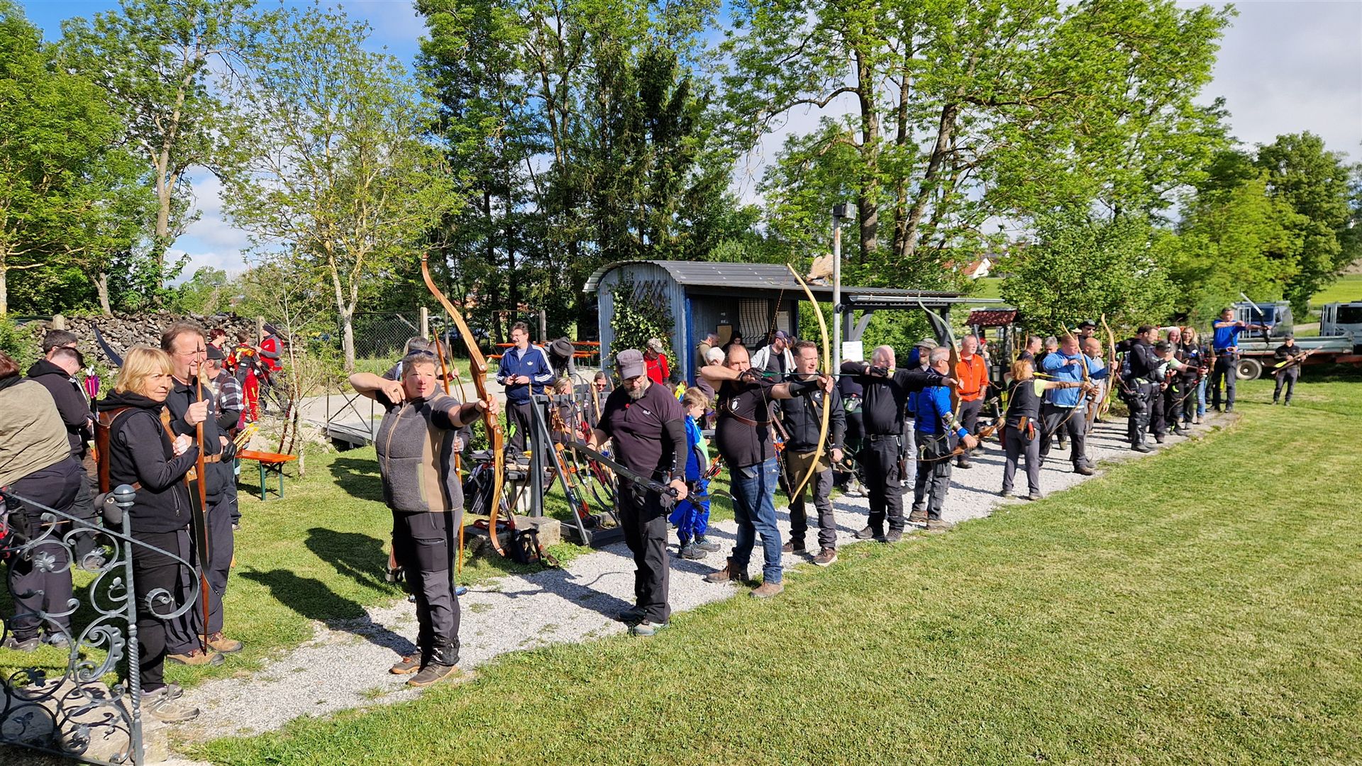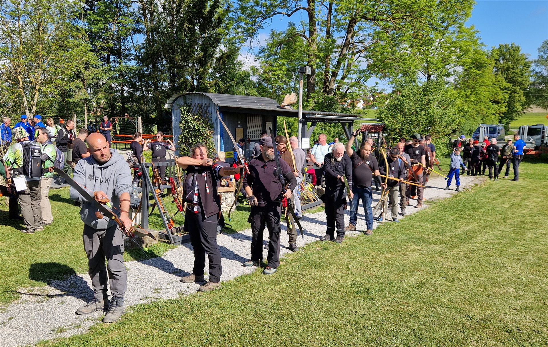 Schon Tage vorher haben die Edelknechte mit Hochdruck gearbeitet Parcours mähen Schussfenster ausschneiden die 3D Tiere kontrollieren alles war bestens vorbereitet. Bereits am Freitag kamen die ersten Bogenschützen mit ihren Wohnmobilen der Parkplatz am Wohnbach ist, ein beliebter Stellplatz.