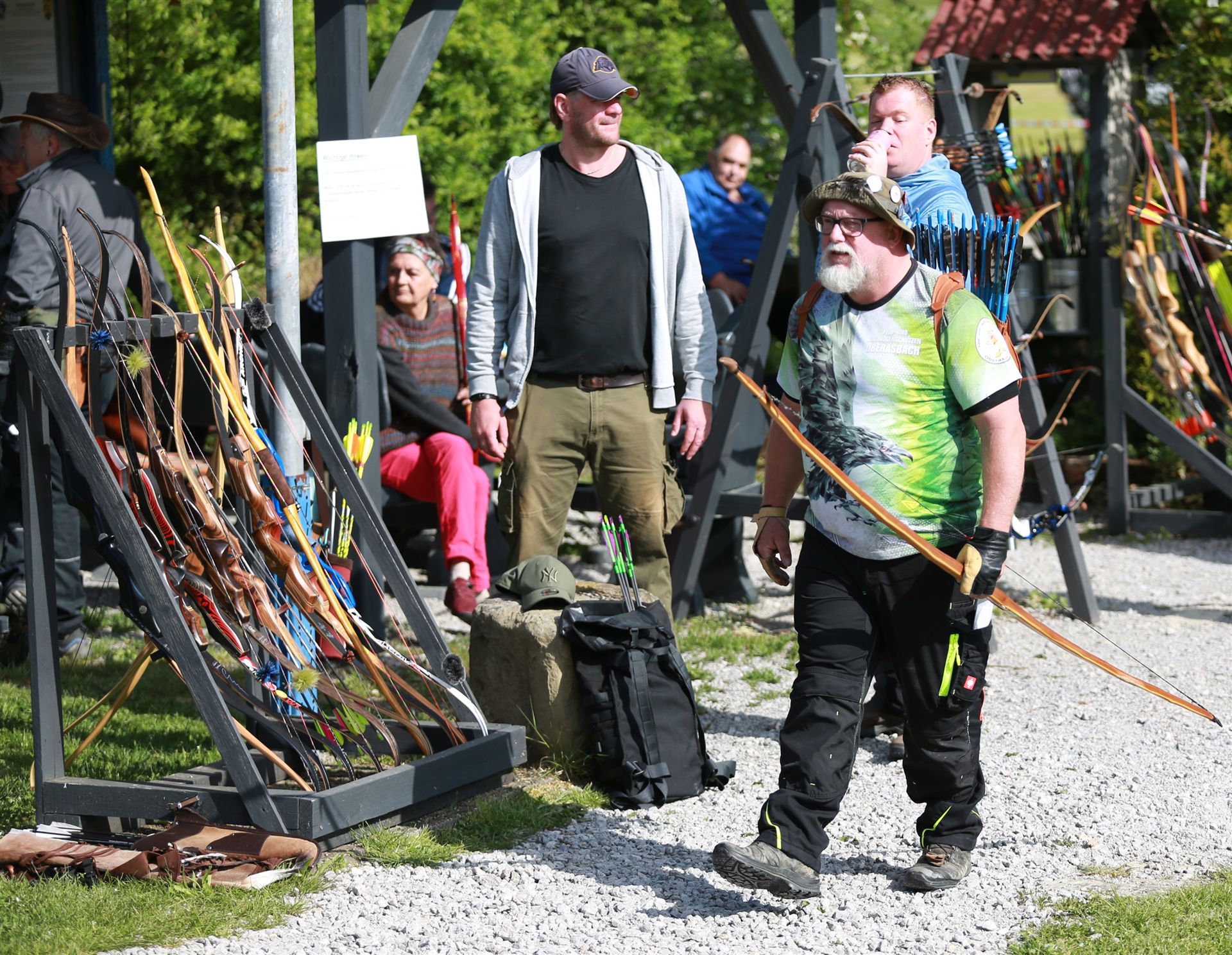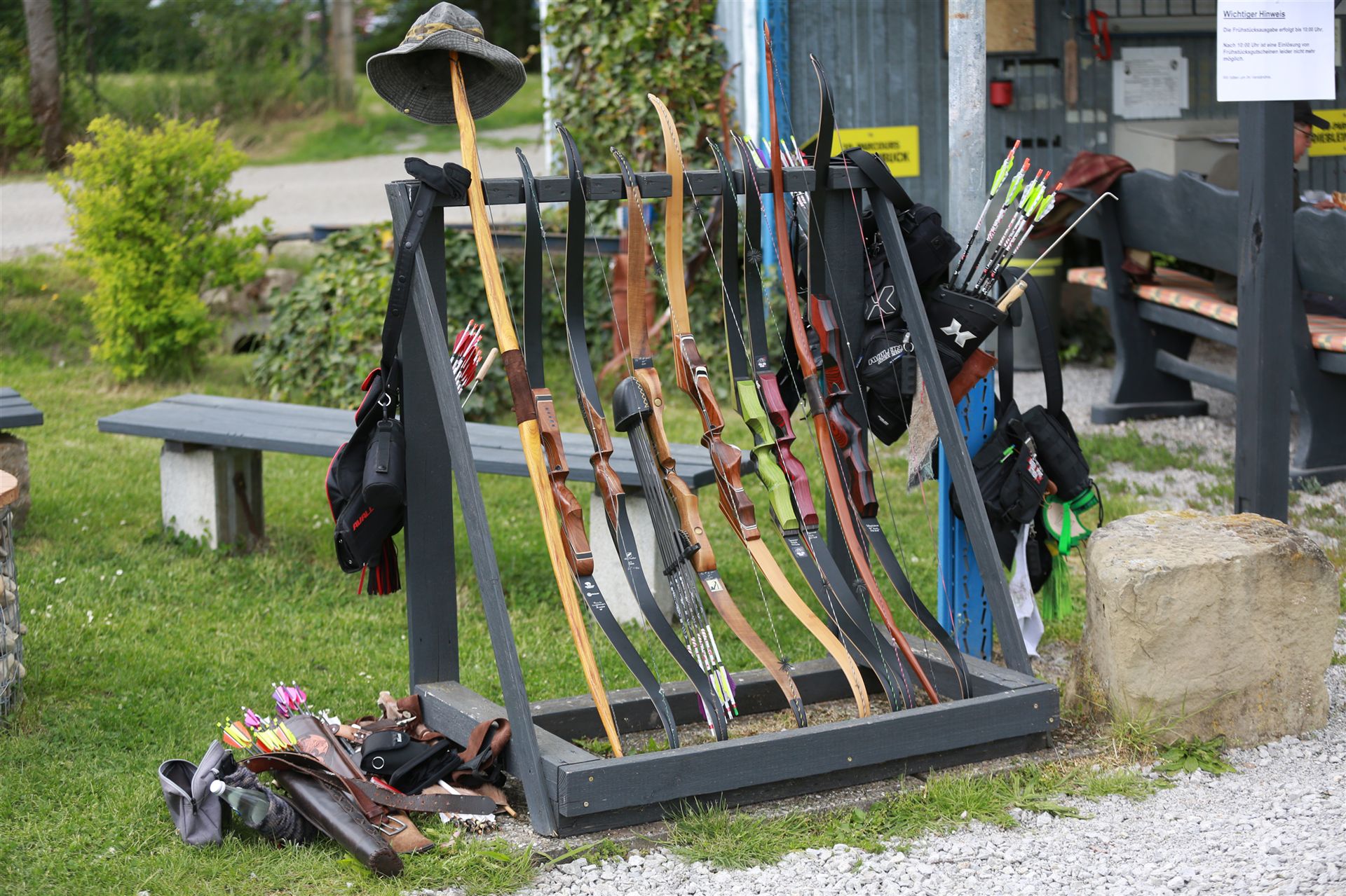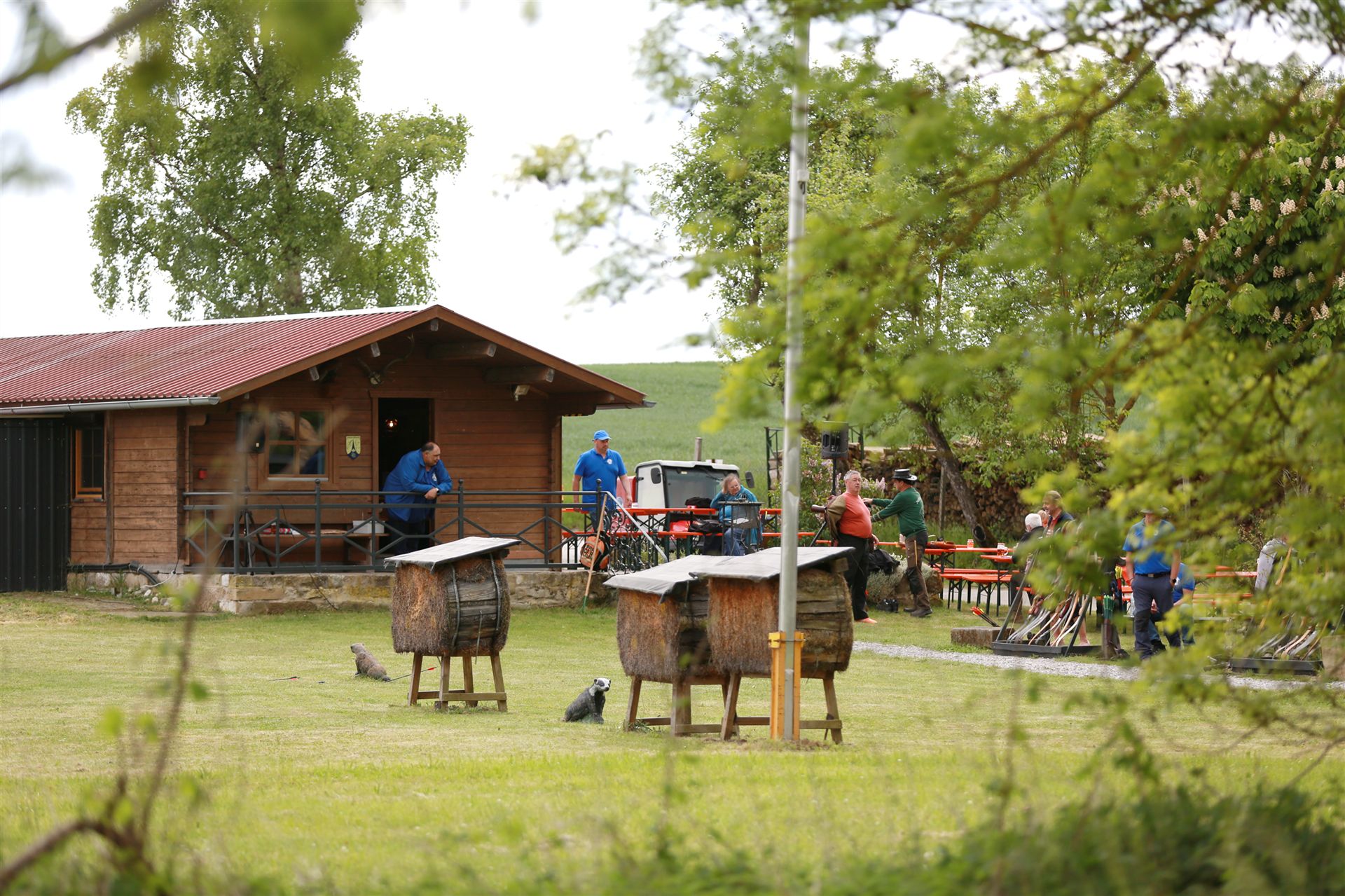 Schon Tage vorher haben die Edelknechte mit Hochdruck gearbeitet Parcours mähen Schussfenster ausschneiden die 3D Tiere kontrollieren alles war bestens vorbereitet. Bereits am Freitag kamen die ersten Bogenschützen mit ihren Wohnmobilen der Parkplatz am Wohnbach ist, ein beliebter Stellplatz.