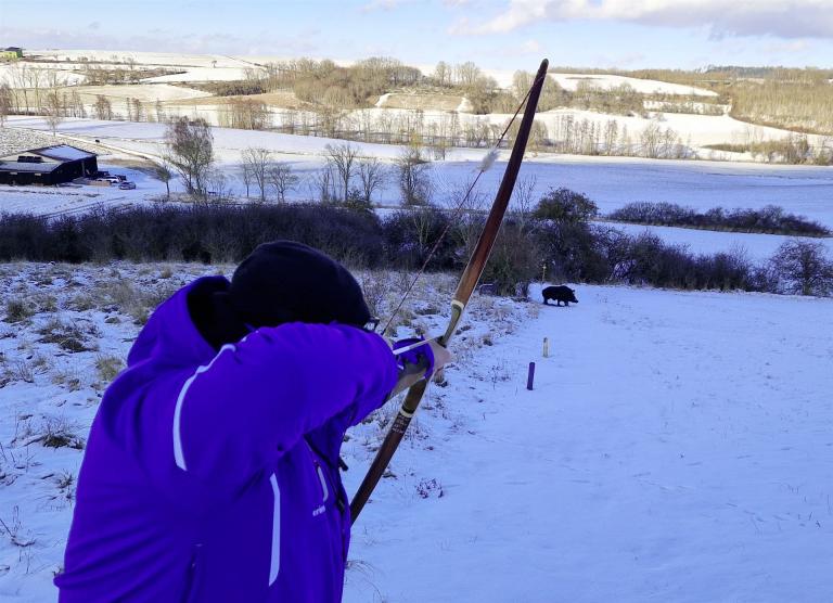 Bogenschießen im Januar: Der Schnee knirscht unter den Schuhen, die Sonne steht hoch und wärmt unsere Gesichter. Unterwegs mit Freunden – es gibt kaum etwas Schöneres.