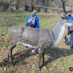 Herz und Seele des Bogensportspektakels, unser gemeinsamer Freund Henry Bodnik, ließ Jagdsimulationen entstehen, die den Sportgeist jedes Schützen bis aufs Äußerste anspannte. Insgesamt 123 verschiedenen 3D-Zielen wurden gestellt. Inmitten eines schönen Buchenwaldes gelegen war dieser Parcours mehr als ansehnlich und die gut versteckten Jagdsimulationen jeden Treffer wert. Alle Junioren und Erwachsenen wurden zunächst in 4-er und 5-er Gruppen eingeteilt. Letztendlich war es ein gut ausgeklügeltes Punktesystem, welches den oder die Beste der jeweiligen Altersgruppe ermitteln sollte. So gab es für einen Treffer im Kill Bereich zwischen zehn und zwanzig Punkte. Genauigkeit, Präzision und ein gutes Maß an Konzentration waren somit gefragt, um sich ganz vorne an der Spitze zu etablieren. Zwischen den drei sichersten Schützen und Schützinnen im Turnierverlauf wurde dann in der jeweiligen Altersklasse der Sieg ermittelt. Bei diesen Duellen wurde auf einen Luftballon gezielt, der auf einer liegenden Hirschattrappe drapiert war. In der Nationenwertung den Platz zwei belegt, freuen wir uns insbesondere für Mihaly Vas, einem Diebacher Edelknecht.