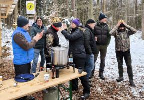 Die Bucher Bogner hatten uns zum Königsschießen eingeladen. Nach einer kurzen Begrüßung durch Kerstin Geier wurden die Gruppen mittels Lose eingeteilt und so machten wir uns auf den Weg. Es erwartete uns eine verkürzte Runde mit raffiniert gestellten Schussfenster. Der Schnee knirschte unter den Schuhen und an den verschneiten 3D Zielen war oft der Kill Bereich gar nicht auszumachen auch die Suche nach Pfeilen gestaltete sich manchmal schwierig. Zurück am Rastplatz erwartete uns dann eine heiße und leckere Gulaschsuppe und eine Feuerstelle sorgte für die nötige Wärme. Nach der Siegerehrung gab es noch ein gemütliches Beisammensein. Wir sagen nochmal herzlichen Dank für die Einladung. Es war bestimmt nicht das letzte Mal das die beiden Vereine etwas gemeinsam unternommen haben. Danke Kerstin für eure Fotos.