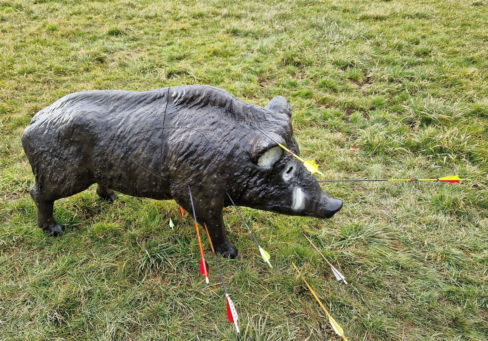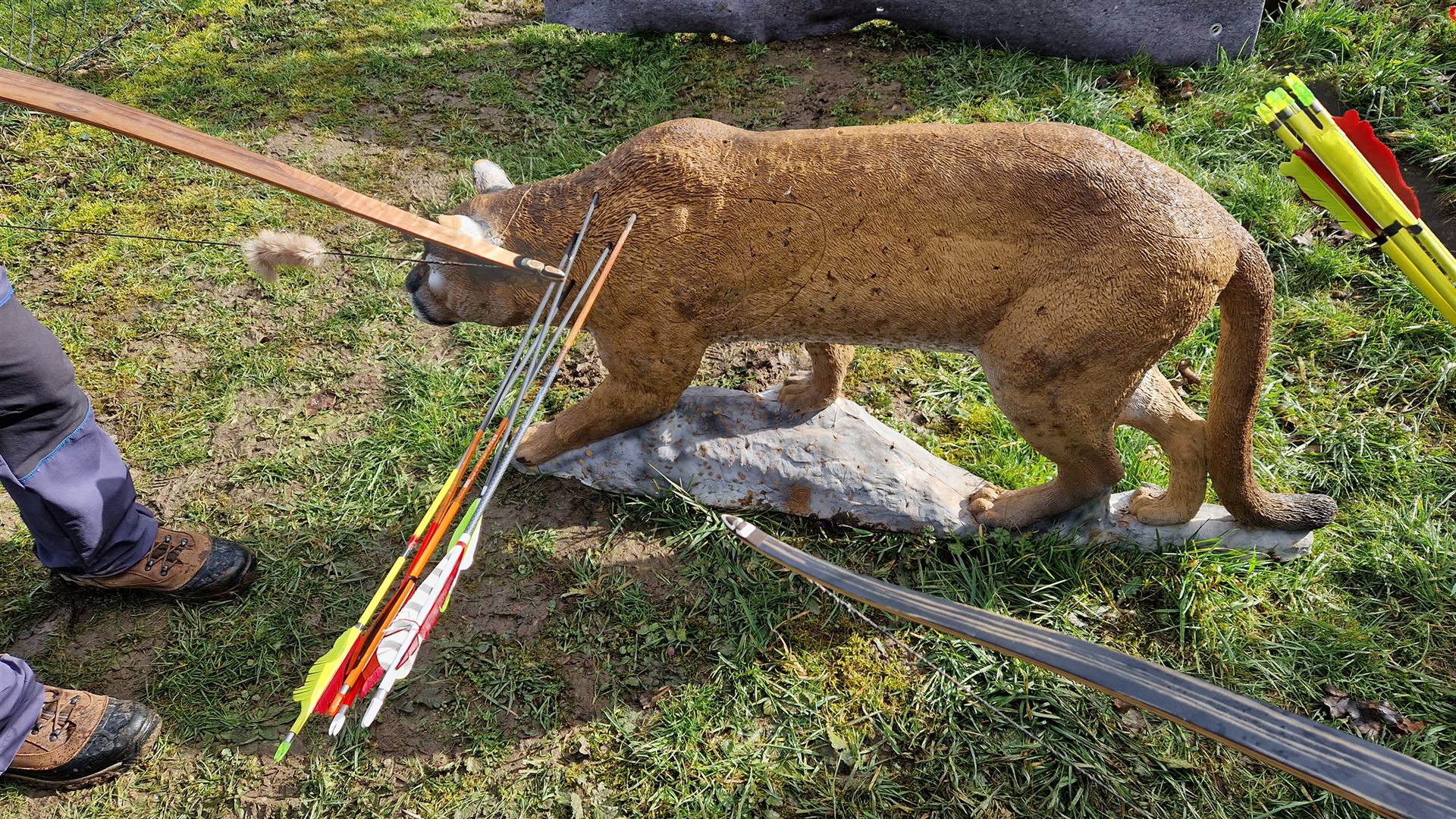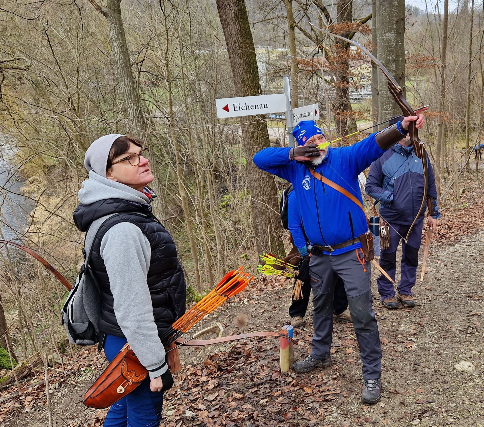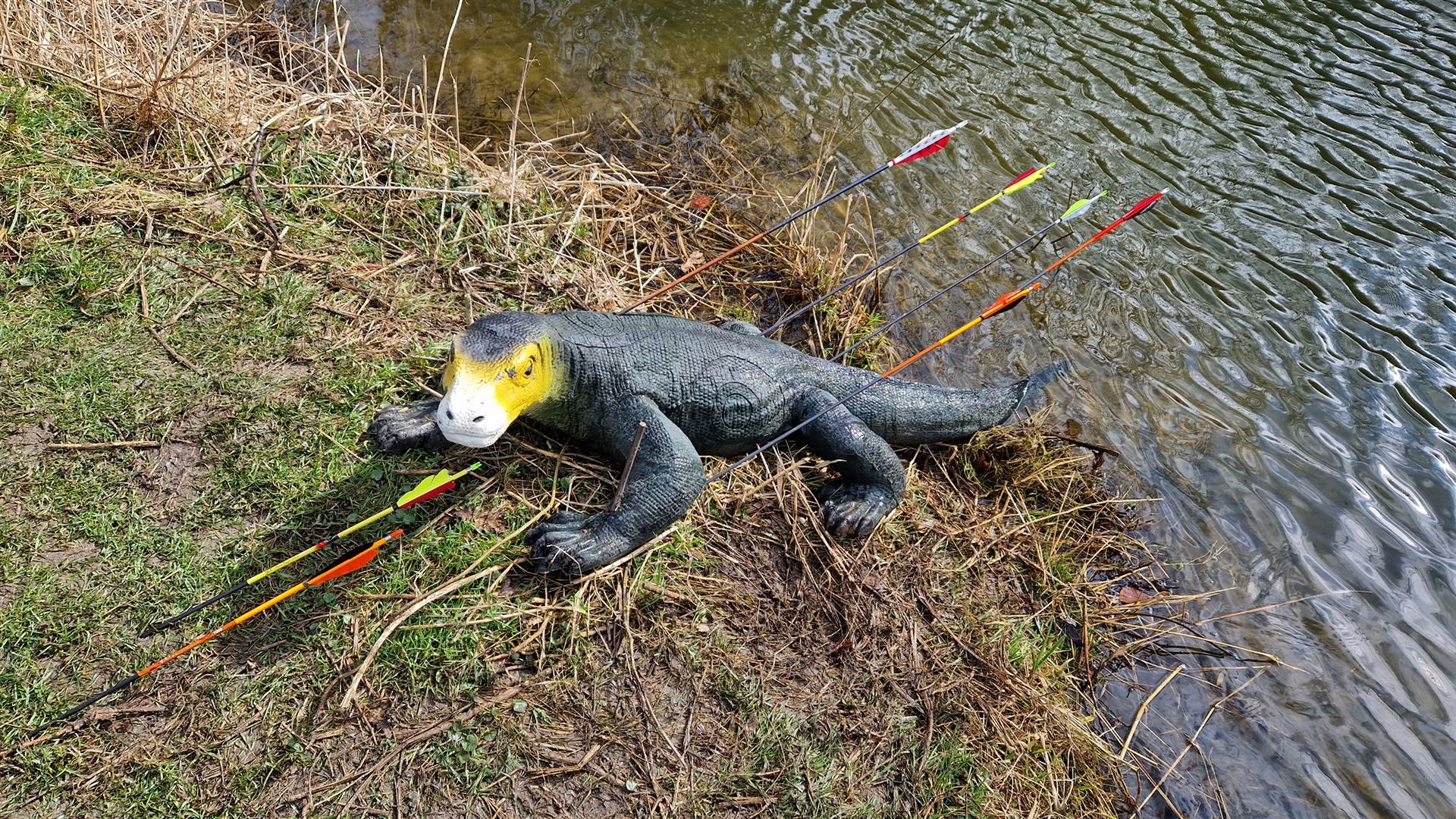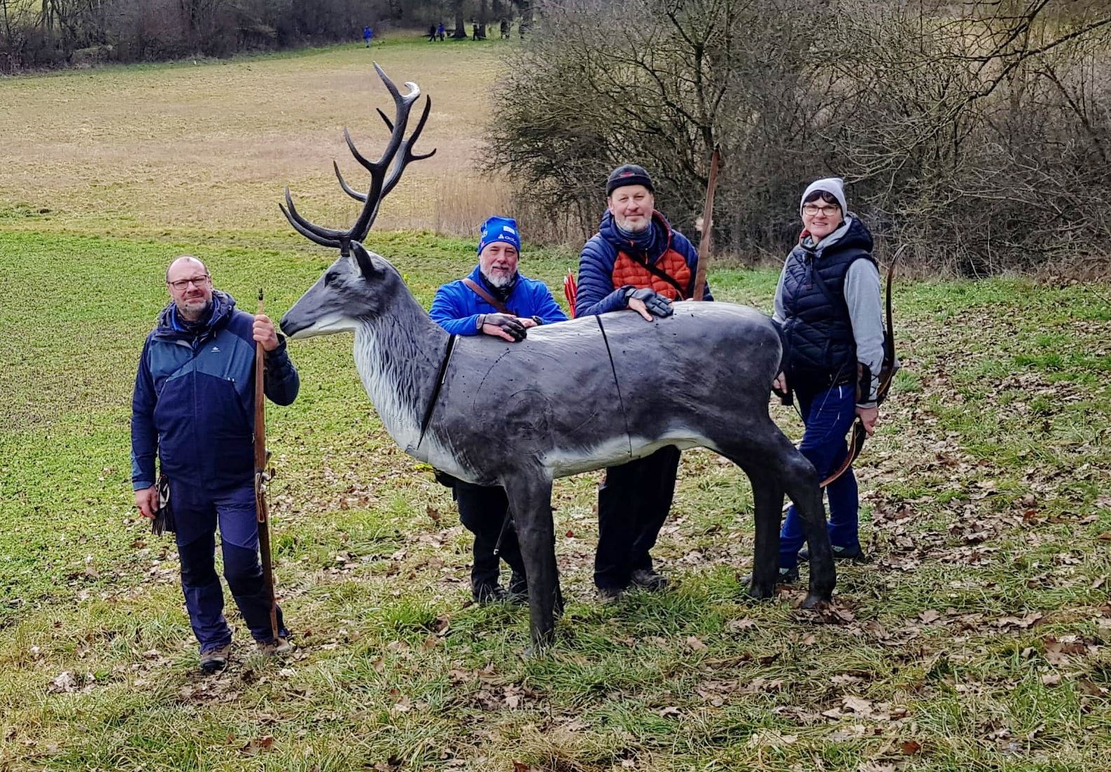 Insgesamt waren 32 Stationen ausgerufen worden. Hier wurde jede Ecke und Nische genutzt, um die Attraktivität des Parcours stets hochzuhalten. Geschossen wurde auf 3D Tiere, welche stellenweise exotisch anmuteten. So versteckte sich entlang eines Uferweges ein gefährliches Krokodil unter der Brücke. Weitere Ziele waren Luchs, Wolf, Varan und Hirsch, die ganz ihrer Natur wunderschön abgebildet wurden. Alle Teilnehmer freuten sich ebenfalls über reichlich warmes und kaltes Essen sowie Getränke, die uns auf der Verpflegungsstation des Sportplatzes angeboten wurden.