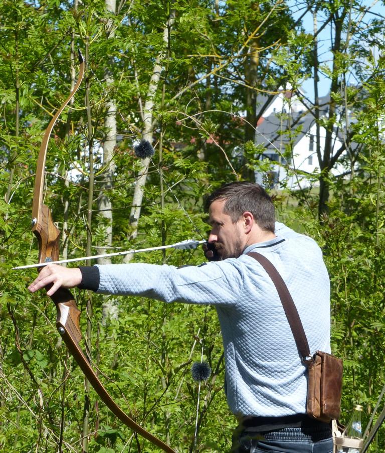 Um 10 Uhr startete der Wettbewerb auf dem 3D Bogenparcours Lerchenbuck. Dieser präsentierte sich mit 32 Stationen sehr abwechslungsreich. Als Ziele dienten vor herrlicher Naturkulisse dreidimensionale Figuren von Bären, Fasanen, Hasen, Ottern, Rehen, Haubenhühnern, Wölfen sowie ein Moschusochse. Dabei ermöglichte das hochstehende Gras reizvolle Schussfenster. Ein großes Lob bekamen wir für die neu gestellten Ziel am Wasser, was für viele auch eine Herausforderung war den wer das Ziel verfehlte war oft gezwungen ins Wasser zu steigen!