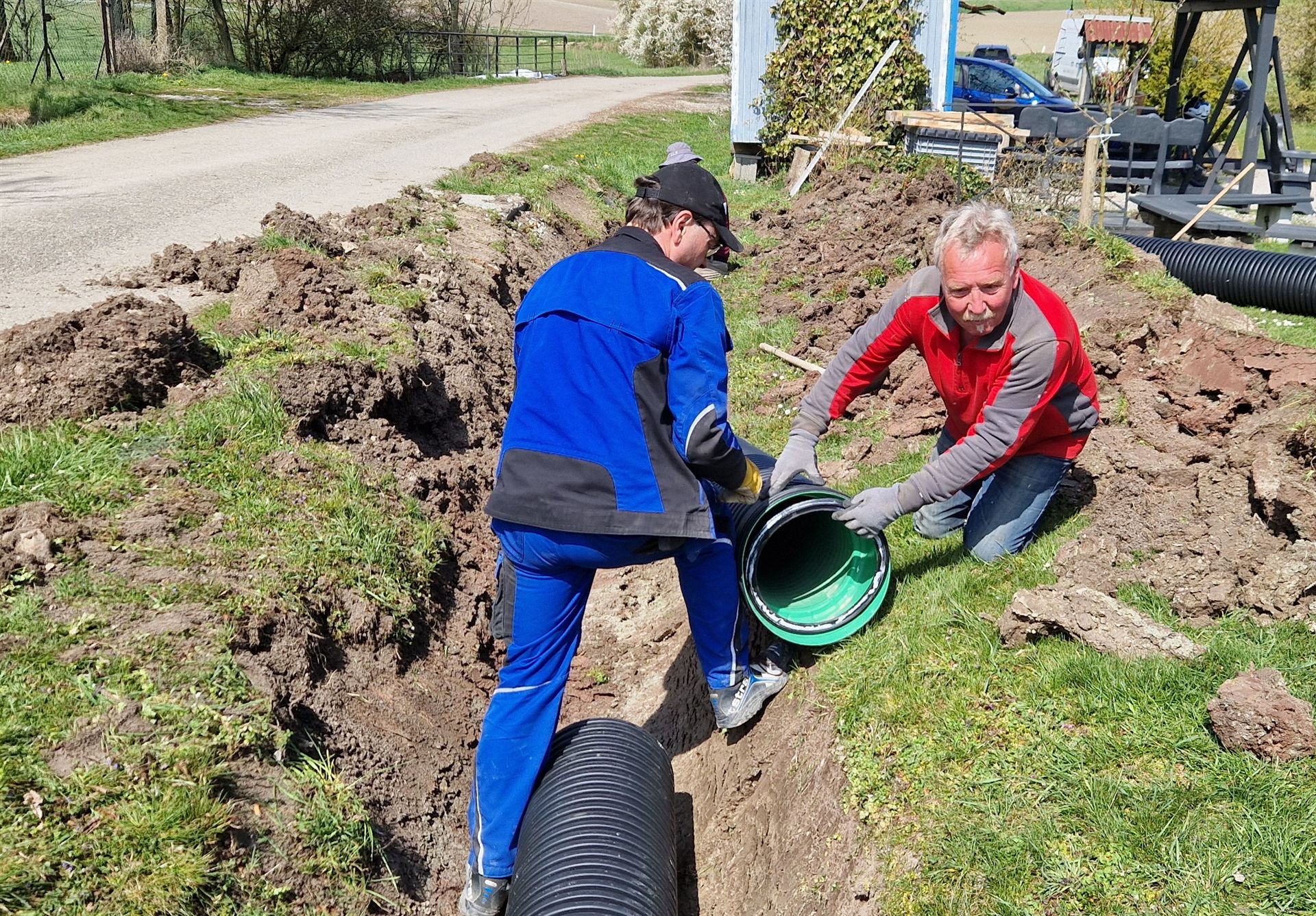 Im Rahmen eines weiteren erfolgreichen Arbeitseinsatzes haben wir unsere Vereinsinfrastruktur deutlich verbessert. Durch das Verlegen von Kanalrohren konnte der Graben zwischen Straße und Vereinsgelände geschlossen werden.